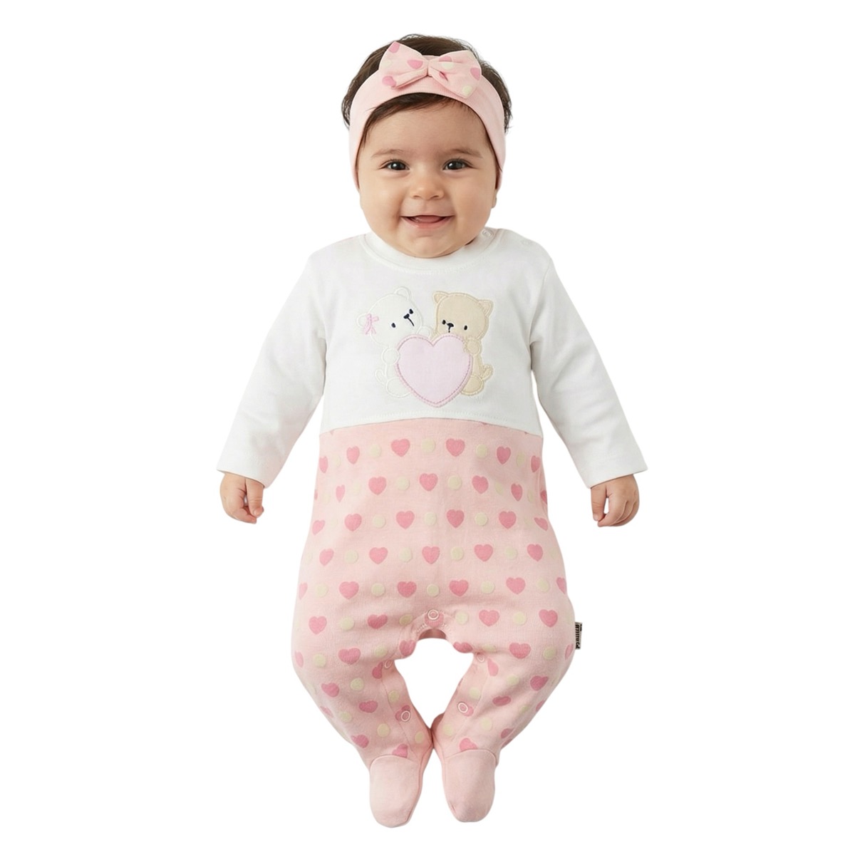 Annora Baby λεπτό ολόσωμο φορμάκι και κορδέλα για τα μαλλιά «Lovely Bears»