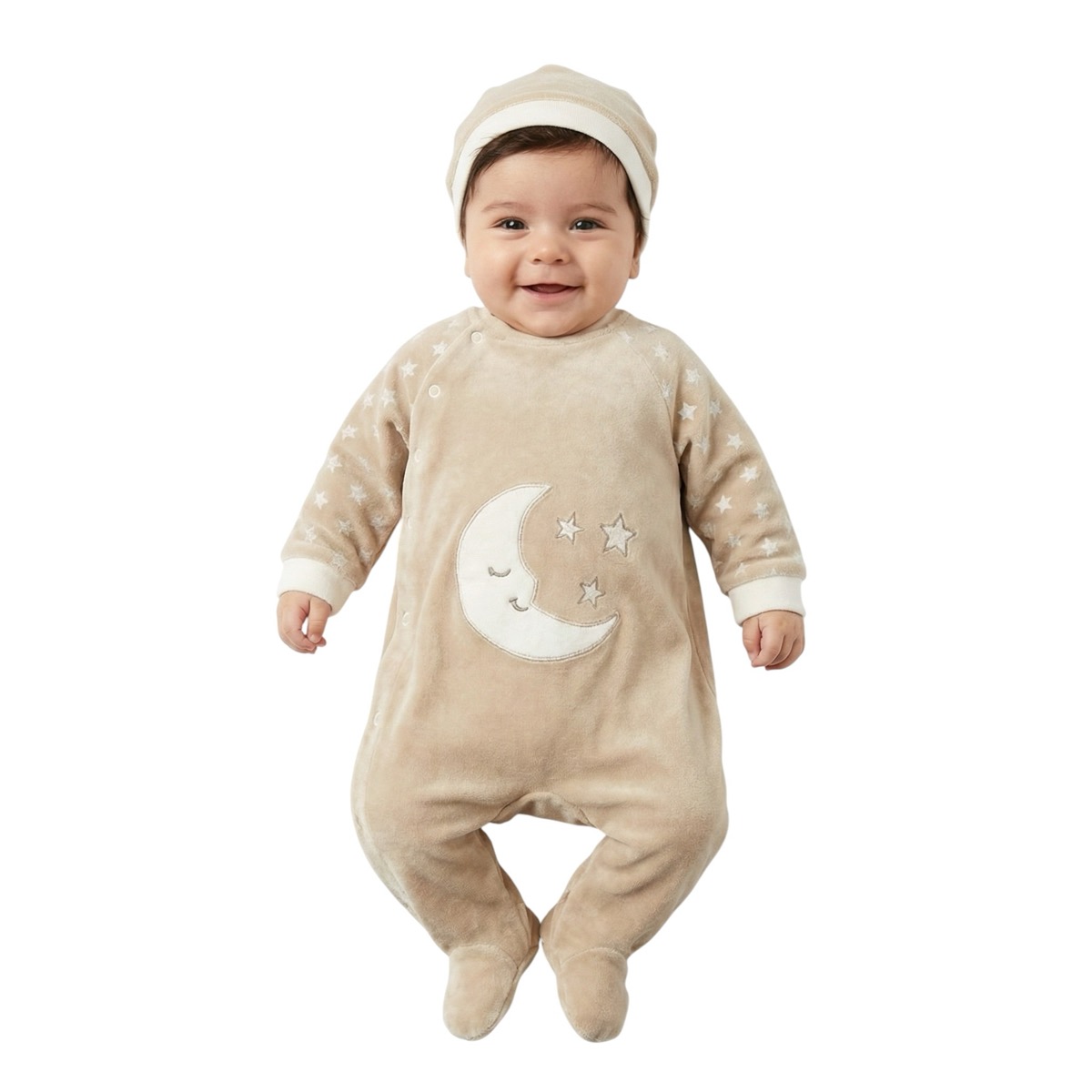 Annora Baby ολόσωμο βελουτέ φορμάκι με σκουφάκι «Beige Moon»