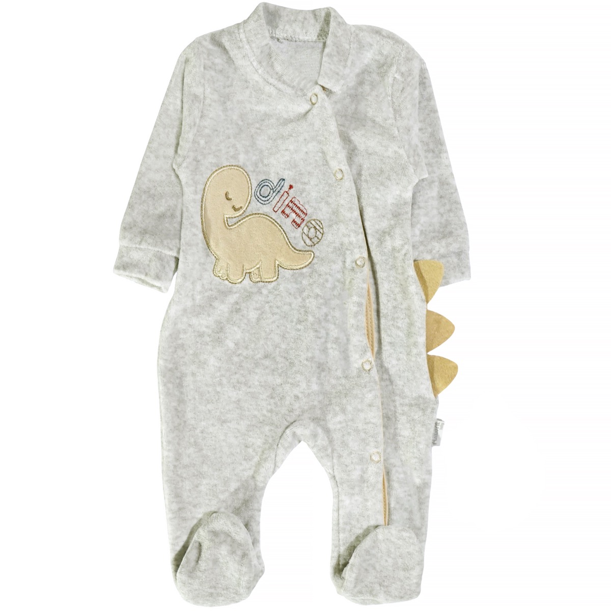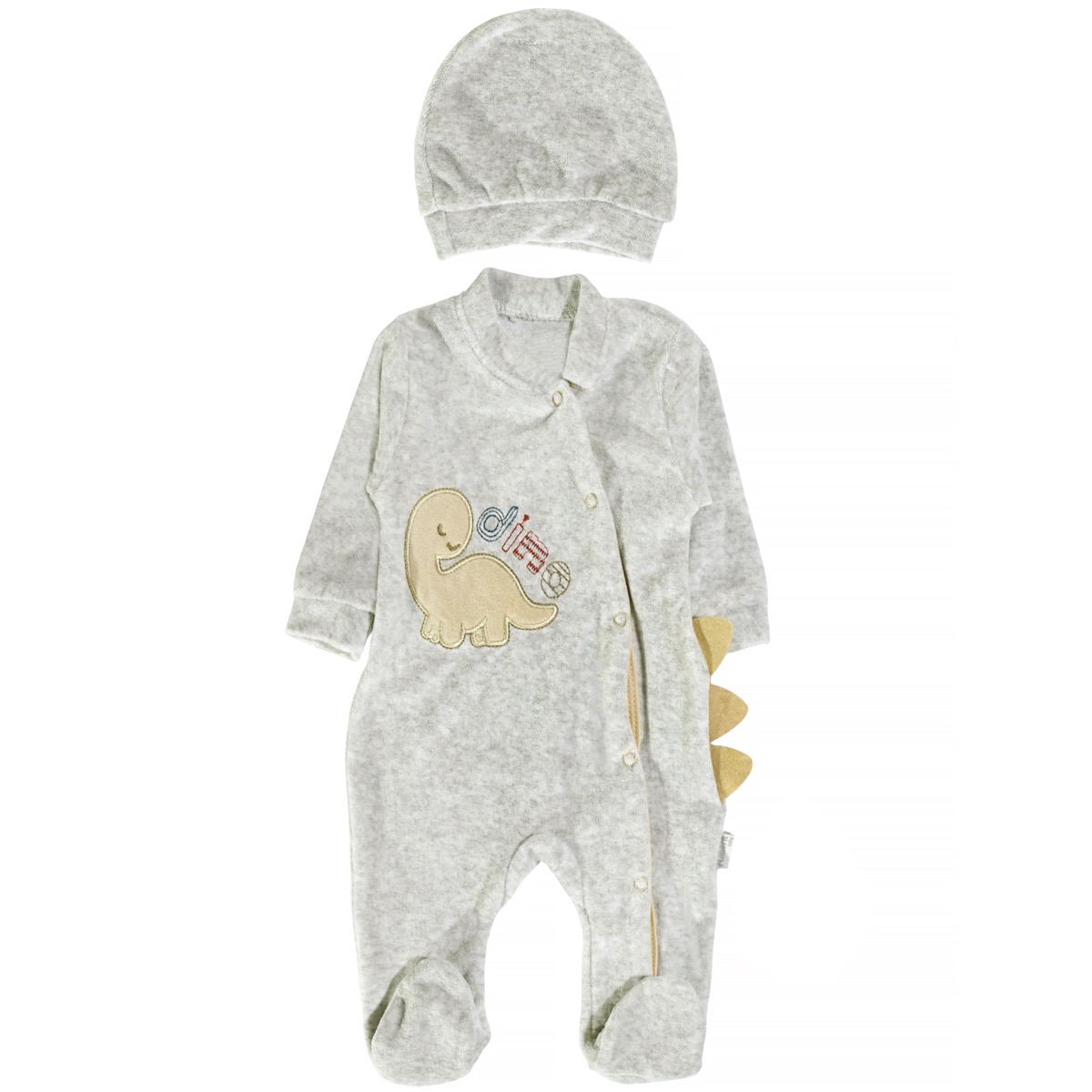 Κλασικό και άνετο, το βελουτέ φορμάκι της Annora Baby σε γκρι απόχρωση είναι μια εξαιρετική χειμερινή επιλογή για το αγοράκι σας. Φτιαγμένο από βελουτέ βαμβακερό ύφασμα με σύνθεση 80% βαμβάκι και 20% πολυεστέρα, προσφέρει ζεστασιά και απαλή αίσθηση. Τα απλικέ σχέδια στο εμπρός μέρος δίνουν μια χαριτωμένη νότα, ενώ το άνοιγμα με τρουκς από πάνω έως κάτω στο πλάι κάνει το ντύσιμο πρακτικό και γρήγορο. Το ασορτί σκουφάκι που συμπληρώνει το σετ κρατά το κεφαλάκι του μωρού ζεστό και προστατευμένο.