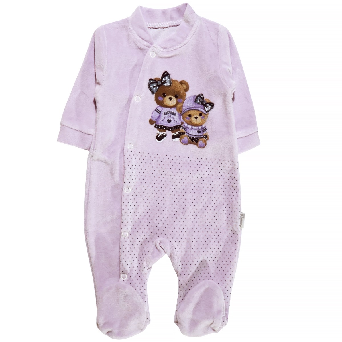Το ολόσωμο βελουτέ φορμάκι με σκουφάκι Annora Baby σε μοβ χρώμα είναι η απόλυτη λύση για τις χειμερινές ημέρες. Φτιαγμένο από βελουτέ βαμβακερό ύφασμα με σύνθεση 80% βαμβάκι και 20% πολυεστέρα, εξασφαλίζει ζεστασιά και άνεση στο ευαίσθητο δέρμα του μωρού. Τα απλικέ σχέδια στο εμπρός μέρος δίνουν γλυκιά και χαριτωμένη εμφάνιση, ενώ το άνοιγμα με τρουκς από τον λαιμό έως κάτω κάνει το άλλαγμα απλό και γρήγορο. Συνοδεύεται από ασορτί σκουφάκι που ολοκληρώνει το σετ και κρατά το κεφαλάκι ζεστό. Ένα χειμωνιάτικο ρούχο για κοριτσάκια που συνδυάζει πρακτικότητα και στιλ, ιδανικό για καθημερινή χρήση.