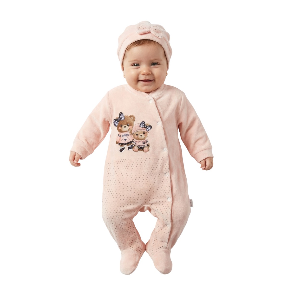 Annora Baby ολόσωμο βελουτέ φορμάκι με σκουφάκι «Little Ones in Salmon»