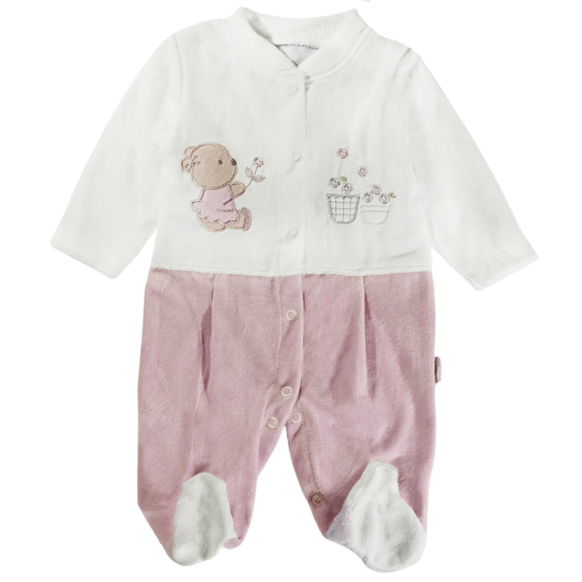 Annora Baby ολόσωμο βελουτέ φορμάκι με σκουφάκι «Lovely Purple Teddy»