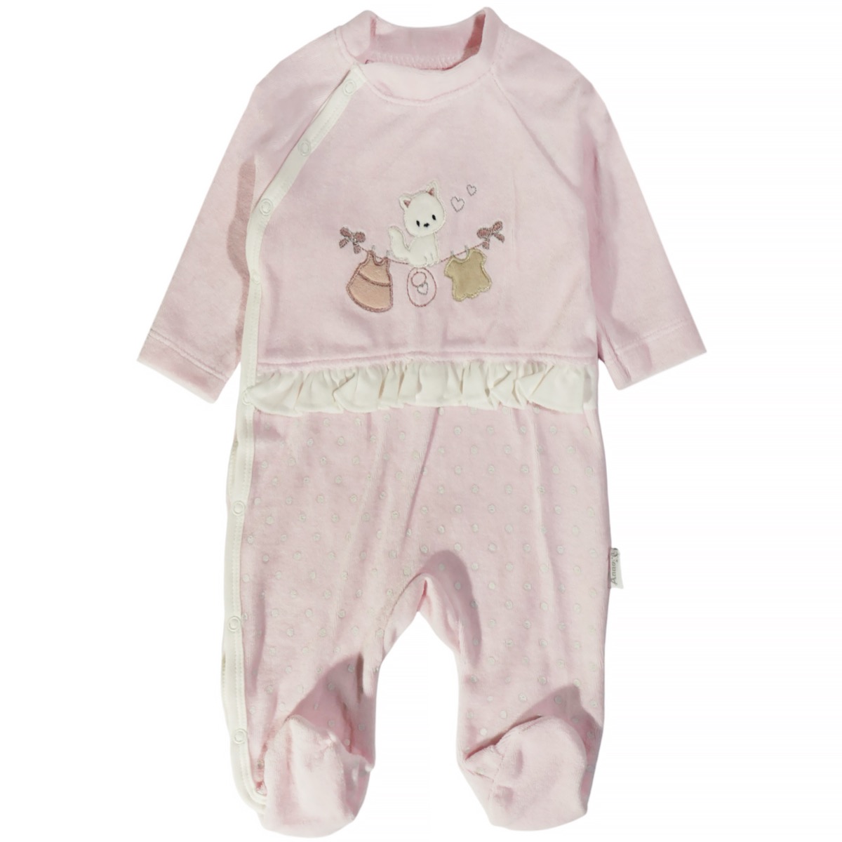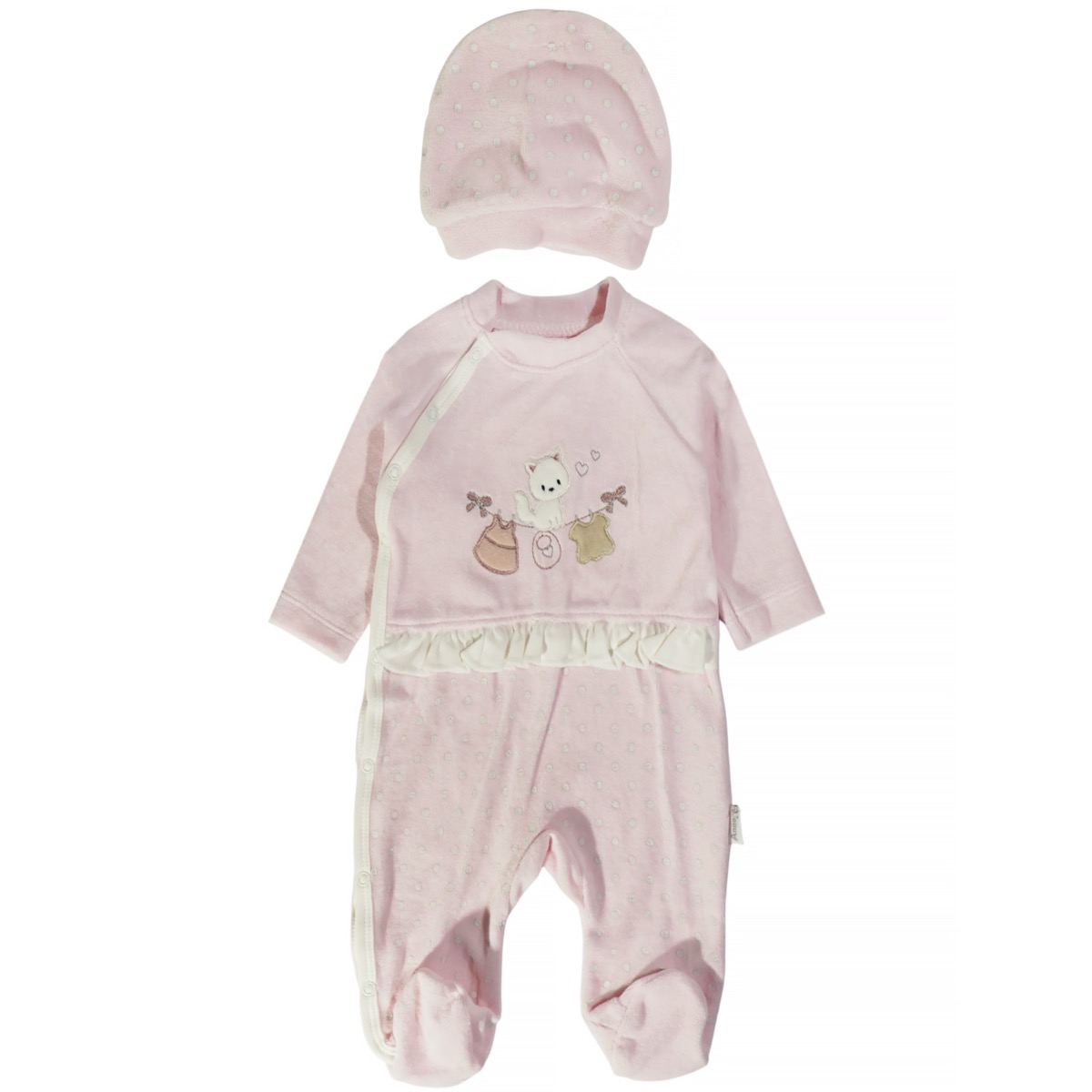 Annora Baby ολόσωμο βελουτέ φορμάκι με σκουφάκι «Pink Kitten»