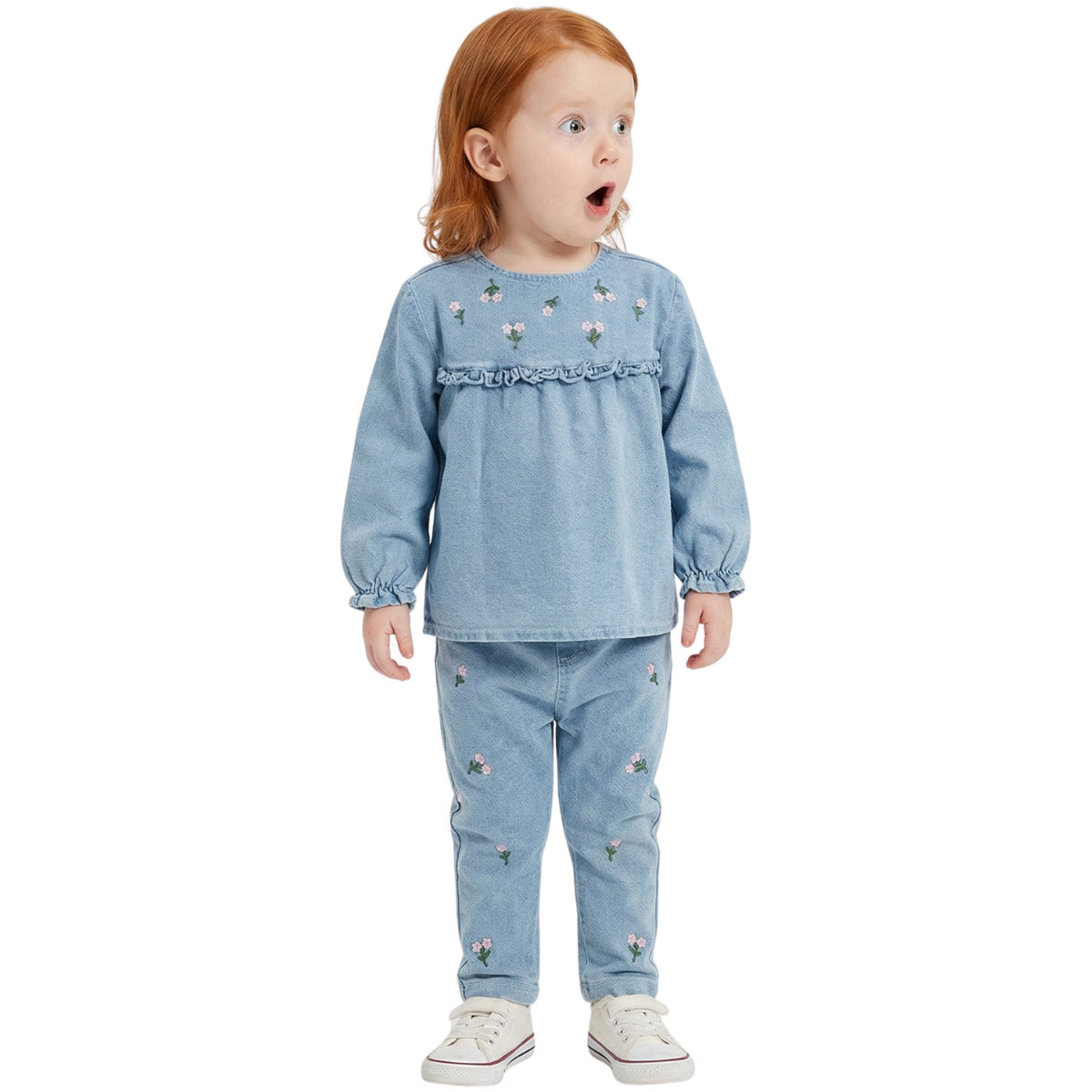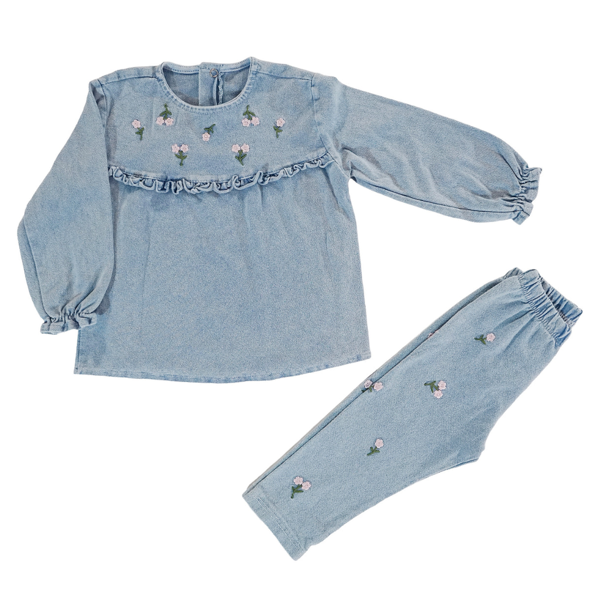 Baby Buu βρεφικό σετ μπλούζα και κολάν από λεπτό τζιν ύφασμα «Little Blossoms»