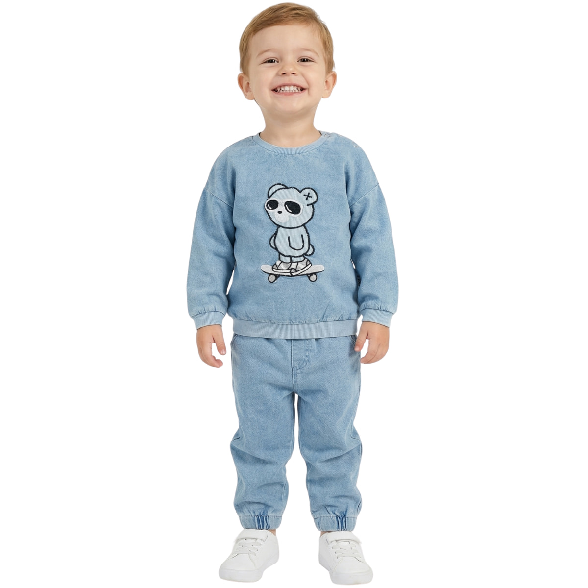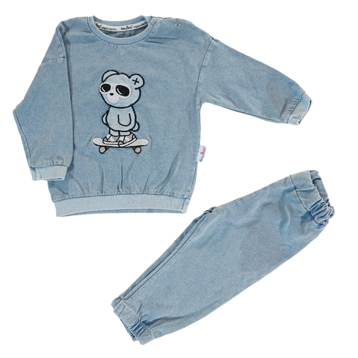 Baby Buu βρεφικό σετ μπλούζα και παντελόνι από λεπτό τζιν ύφασμα «Denim Teddy»