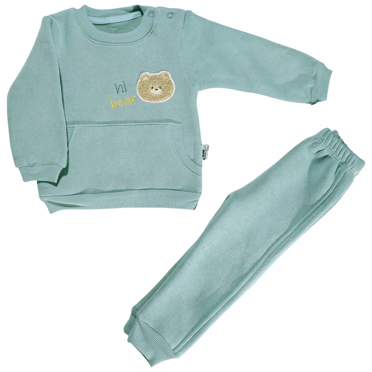 Το βρεφικό σετ φόρμας της Baby Hi σε γαλάζιο χρώμα είναι η ιδανική επιλογή για να κρατήσετε το μικρό σας αγοράκι ζεστό και άνετο τον χειμώνα. Η μπλούζα διαθέτει τσέπη και χαριτωμένο απλικέ σχέδιο στο εμπρός μέρος που προσθέτει παιχνιδιάρικη νότα, ενώ το άνοιγμα με τρουκς στον ώμο διευκολύνει το ντύσιμο του μωρού. Με λάστιχο στο λαιμό, στα μανίκια και περιμετρικά στο τελείωμα, η εφαρμογή είναι άψογη και ασφαλής. Το παντελόνι φέρει λάστιχο περιμετρικά στη μέση και στο τελείωμα, εξασφαλίζοντας ελευθερία στις κινήσεις και το παιχνίδι. Και τα δύο κομμάτια έχουν χνούδι στο εσωτερικό για επιπλέον ζεστασιά και άνεση. Κατασκευασμένο από 100% βαμβάκι, το σετ φροντίζει απαλά το ευαίσθητο δερματάκι του μωρού σας.