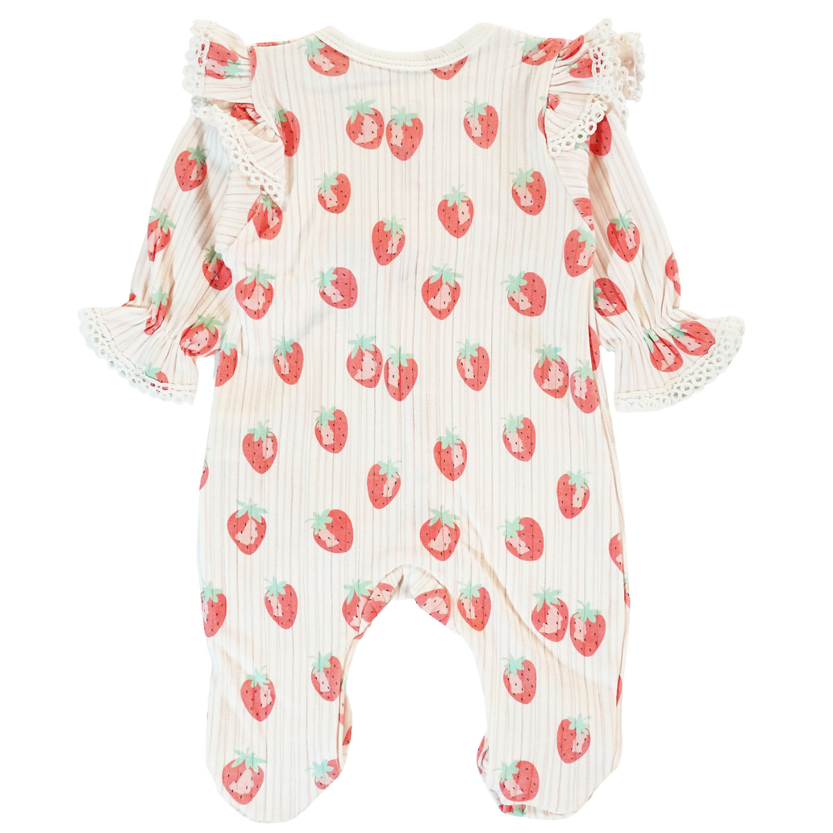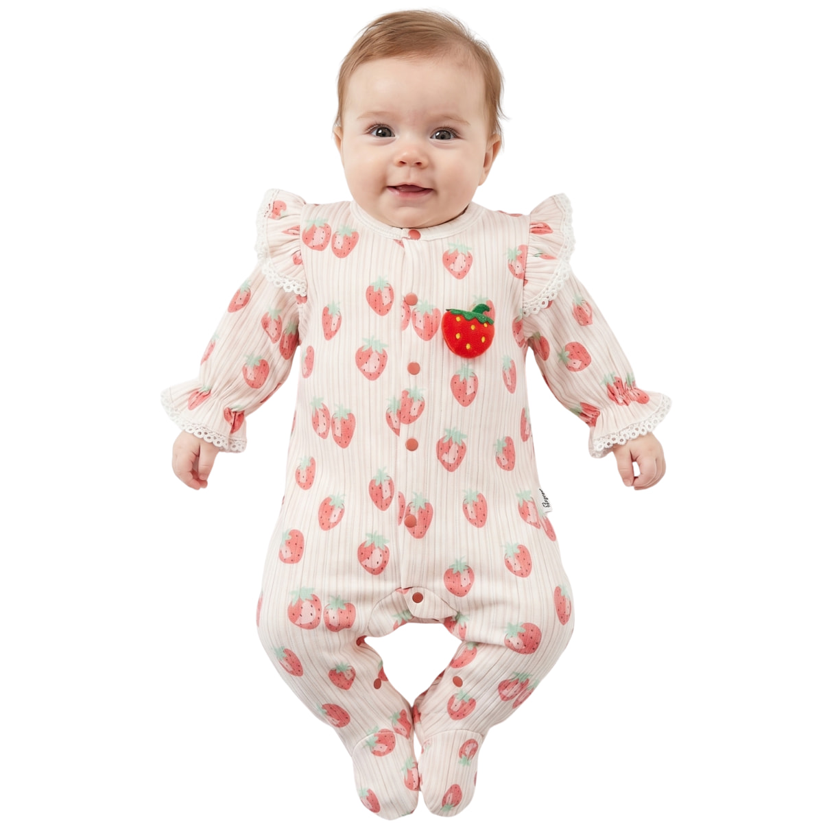 Baby Mii ολόσωμο φορμάκι από λεπτό ύφασμα «Strawberry Hug»