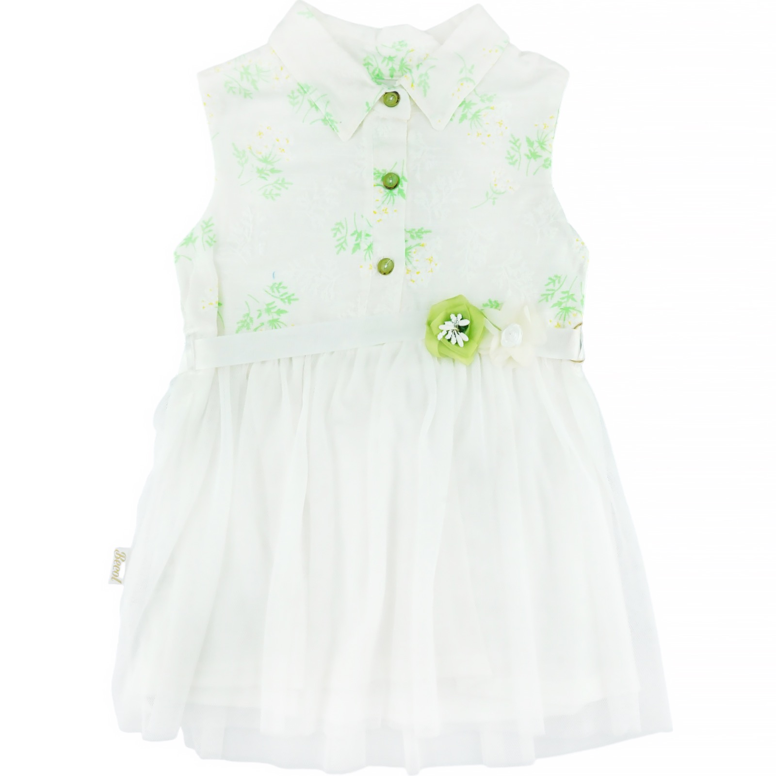 Ανανεώστε την γκαρνταρόμπα της μικρής σας με το εκλεπτυσμένο λευκό φόρεμα από την Becol, ιδανικό για κάθε μέρα και ειδικές περιστάσεις όπως πάρτι. Κατασκευασμένο από 100% βαμβάκι, αυτό το αμάνικο φόρεμα προσφέρει απαλότητα και άνεση, με ένα στυλ που αντέχει στον χρόνο. Διακοσμημένο με κομψό γιακά και κουμπιά στο επάνω μέρος, καθώς και πολυτελές τούλι στο κάτω μέρος, προσθέτει μια αίσθηση διακριτικής θηλυκότητας. Η υφασμάτινη ζωνούλα με λουλουδάκια που δένει στο πίσω μέρος ενισχύει τη γλυκύτητα του σχεδίου. Η βαμβακερή φόδρα εγγυάται άνεση σε κάθε κίνηση, κάνοντας αυτό το φόρεμα μια υπέροχη επιλογή για κάθε περίσταση.