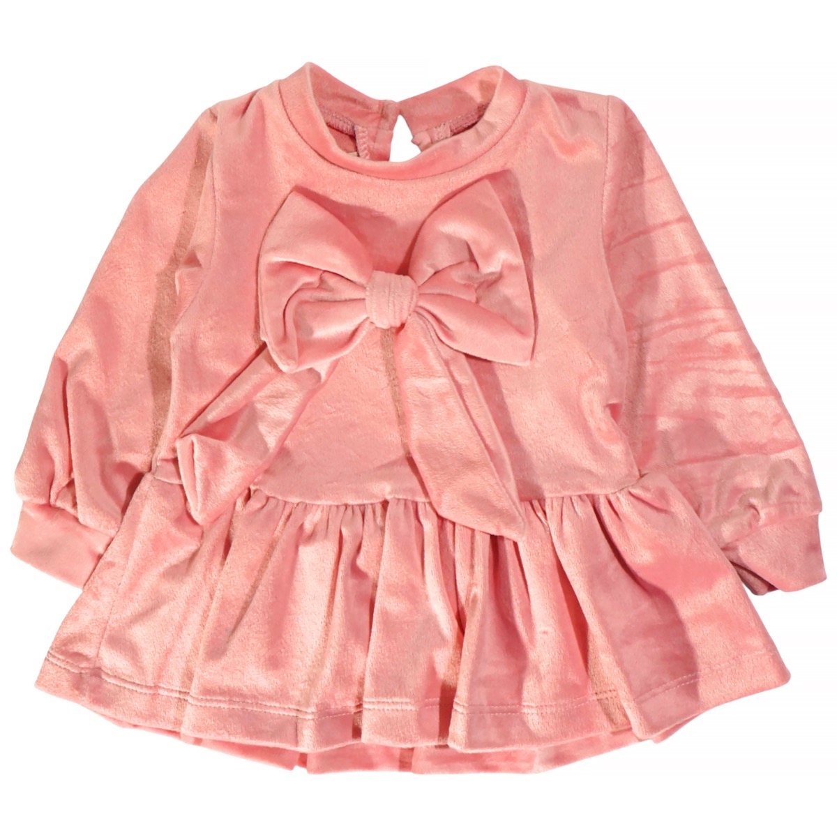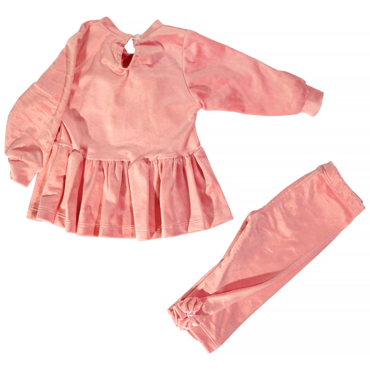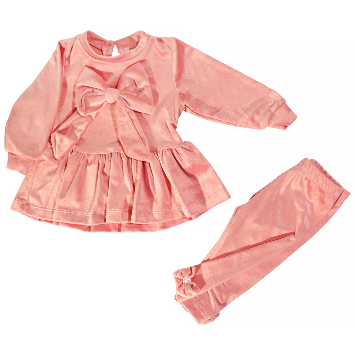 Το βρεφικό βελουτέ σετ της Deco σε ροζ χρώμα είναι μια γλυκιά και κομψή επιλογή για τον χειμώνα. Η μπλούζα ξεχωρίζει με τον μεγάλο φιόγκο εμπρός που προσθέτει μια χαριτωμένη πινελιά, ενώ το άνοιγμα με κουμπί στο πίσω μέρος διευκολύνει το ντύσιμο του μωρού. Το παντελόνι με λάστιχο περιμετρικά στη μέση εξασφαλίζει άνετη εφαρμογή, ενώ τα φιογκάκια στο τελείωμα ολοκληρώνουν το γλυκό σύνολο. Κατασκευασμένο από 100% πολυεστέρα, το βελουτέ ύφασμα προσφέρει απαλότητα και ζεστασιά, καθιστώντας το ιδανικό για τις πρώτες χειμωνιάτικες εμφανίσεις του κοριτσιού σας.