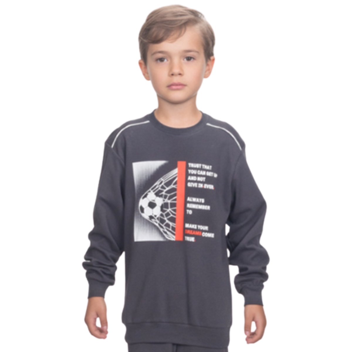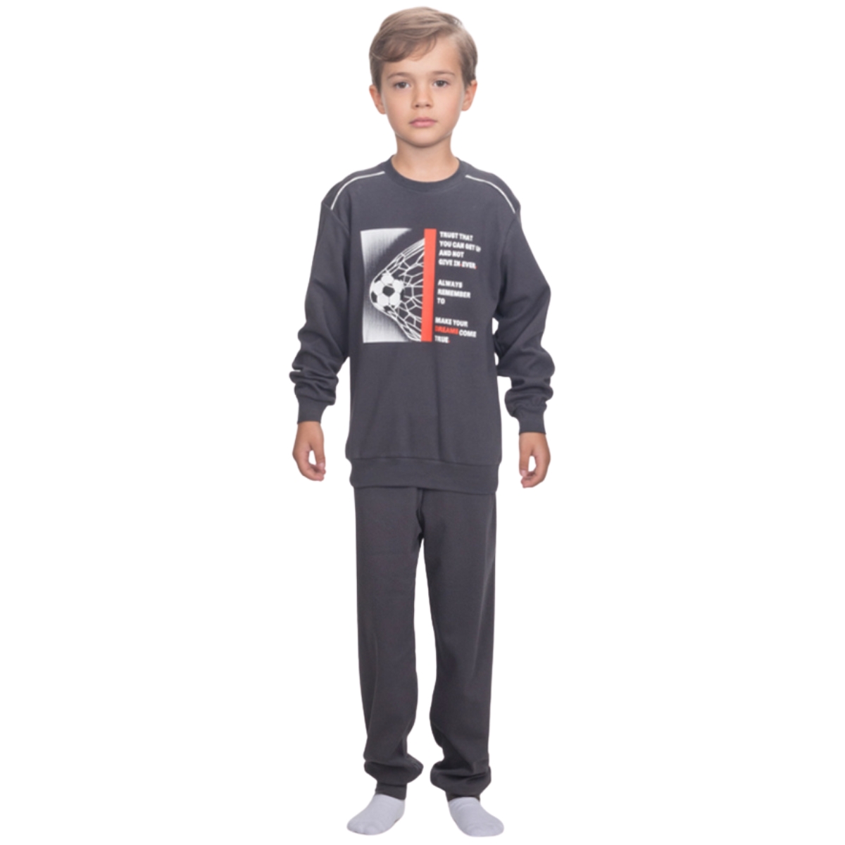Η παιδική πιτζάμα της Dreams σε γκρι χρώμα είναι η ιδανική επιλογή για μικρούς φίλους του ποδοσφαίρου. Η μακρυμάνικη μπλουζίτσα φέρει τύπωμα με μια ποδοσφαιρική μπάλα εμπρός, φέρνοντας το αγαπημένο άθλημα κοντά στα όνειρά τους. Το λάστιχο στο λαιμό, στα μανίκια και στο τελείωμα, καθώς και το παντελόνι με λάστιχο περιμετρικά στη μέση και στο τελείωμα, εξασφαλίζουν απόλυτη άνεση σε κάθε στιγμή. Φτιαγμένη από 100% βαμβάκι, είναι κατάλληλη για τις πιο δροσερές εποχές του χρόνου και προσφέρει στο αγόρι σας τη φροντίδα που του αξίζει.