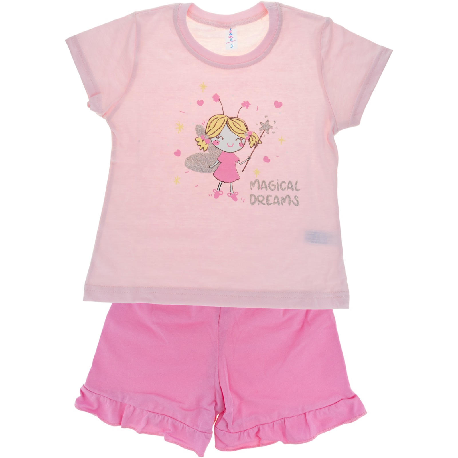 Πιτζαμούλα από απαλό 100% βαμβακερό ύφασμα, για τα πιο ήρεμα όνειρα. Κοντομάνικη μπλουζίτσα με στάμπα στο εμπρός μέρος. Σορτς με λάστιχο περιμετρικά στη μέση.