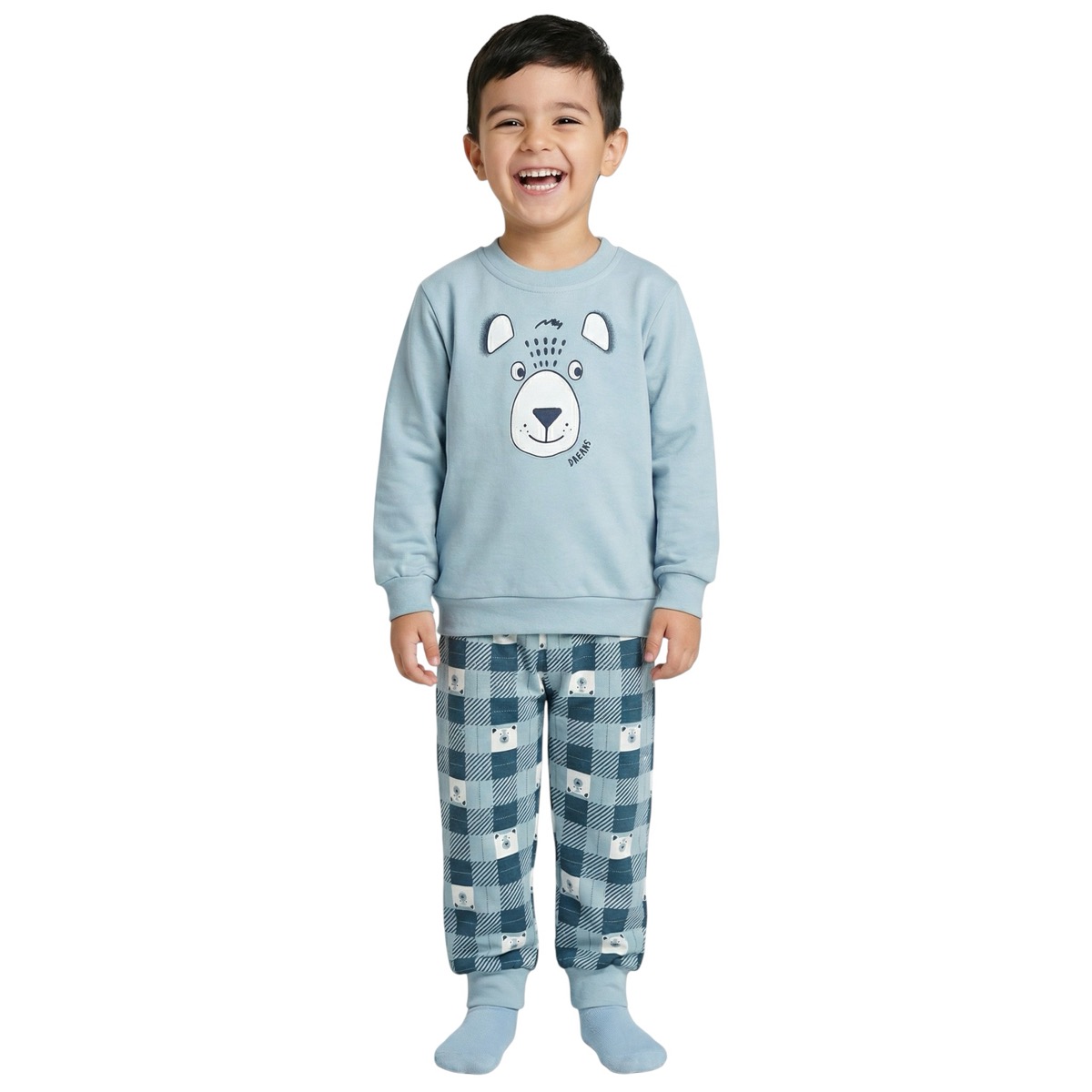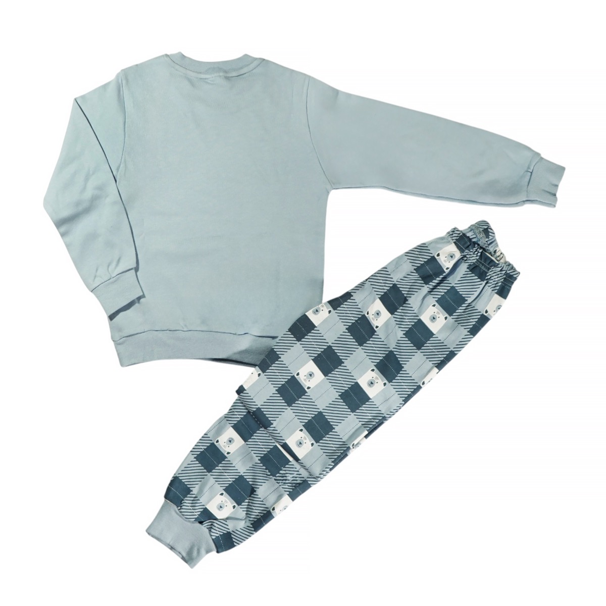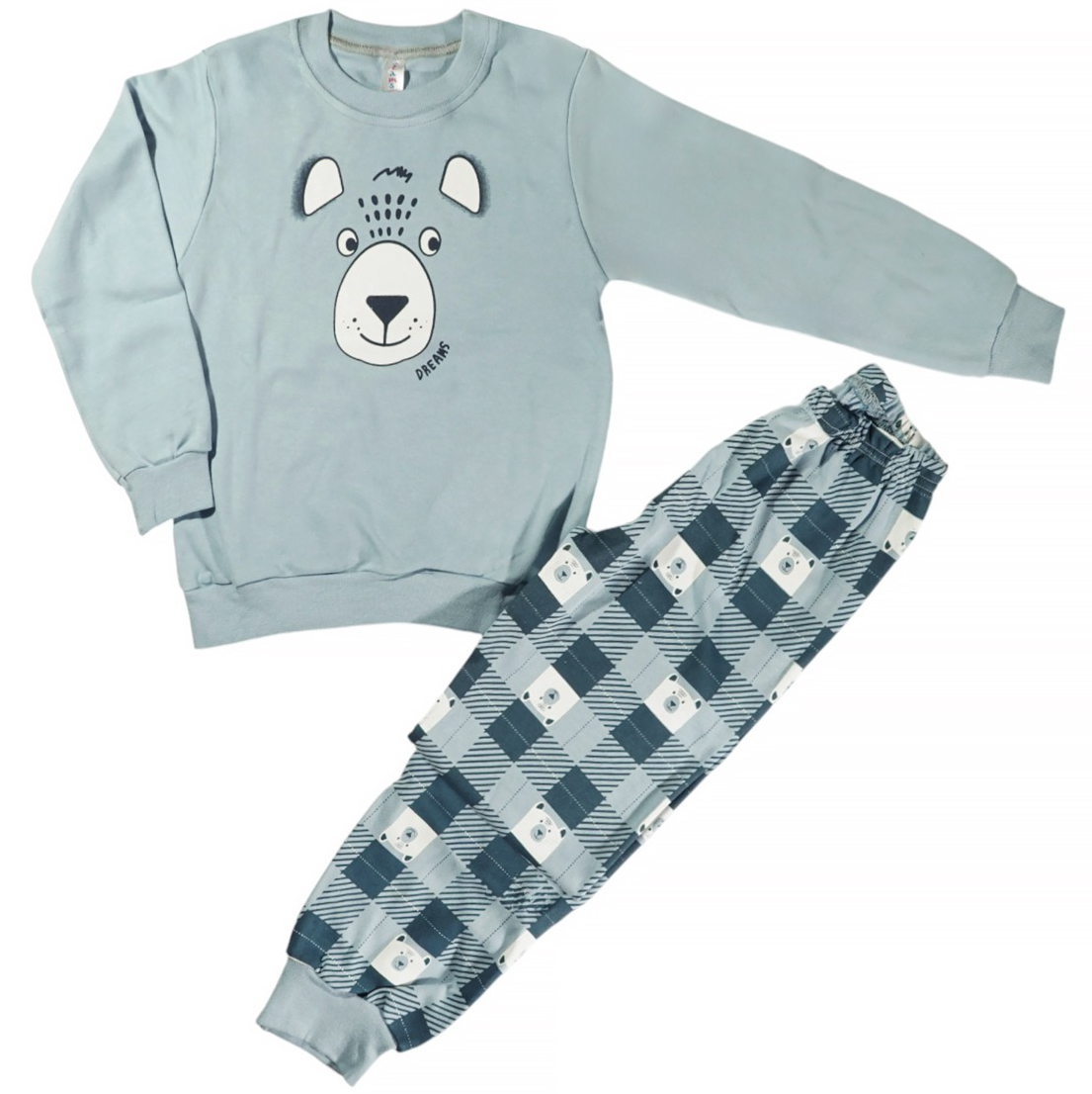Η Dreams πιτζάμα για αγόρια σε γαλάζια απόχρωση συνδυάζει άνεση και στιλάτο αποτέλεσμα, ιδανική για χειμώνα, άνοιξη και φθινόπωρο. Η μακρυμάνικη μπλούζα με στάμπα στο εμπρός μέρος διαθέτει λάστιχο στο λαιμό, στα μανίκια και στο τελείωμα, προσφέροντας σταθερή και άνετη εφαρμογή που δεν περιορίζει τις κινήσεις, ενώ το παντελόνι έχει λάστιχο περιμετρικά στη μέση και στο τελείωμα για ασφαλή προσαρμογή όλη την ημέρα. Επιπλέον, η σύνθεση από 100% βαμβάκι προσφέρει απαλή αίσθηση στο δερματάκι και εύκολο πλύσιμο, καθιστώντας την πρακτική επιλογή για καθημερινή χρήση και ξεκούραστα βράδια.