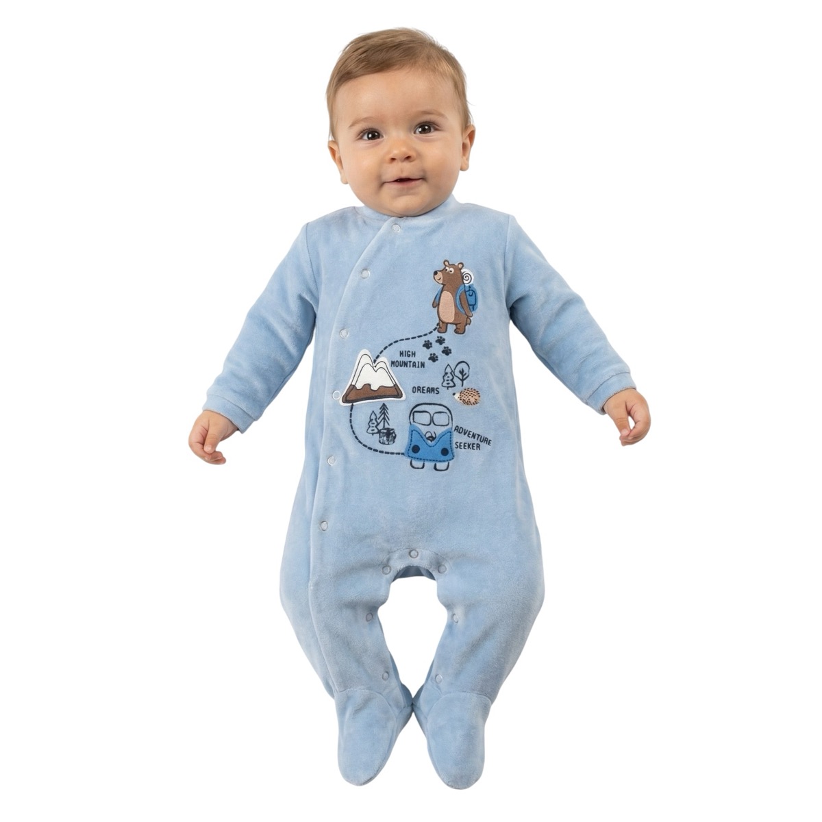 Dreams βελουτέ ολόσωμο φορμάκι «Adventure Seeker in Light Blue»