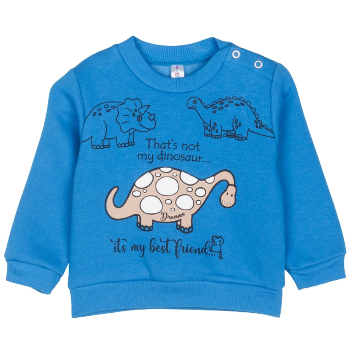 Για χειμωνιάτικες νύχτες, η βρεφική πιτζάμα Dreams σε μπλε χρώμα προσφέρει ζεστασιά και άνεση χάρη στο χνούδι της, ενώ παράλληλα κρατά το μωράκι σας στιλάτο. Η μακρυμάνικη μπλούζα με δεινόσαυρους έχει άνοιγμα με τρουκς στο λαιμό για εύκολο άλλαγμα και λάστιχο στο λαιμό, τα μανίκια και το τελείωμα που διασφαλίζουν σωστή εφαρμογή. Επιπλέον, το παντελόνι με λάστιχο περιμετρικά στη μέση και στο τελείωμα επιτρέπει ανεμελιά στις κινήσεις χωρίς να ανεβαίνει. Η σύνθεση 80% βαμβάκι και 20% πολυεστέρας συνδυάζει απαλή αίσθηση και αντοχή στο πλύσιμο, καθιστώντας το σετ πρακτική και άνετη επιλογή για ύπνο και παιχνίδι στο σπίτι.