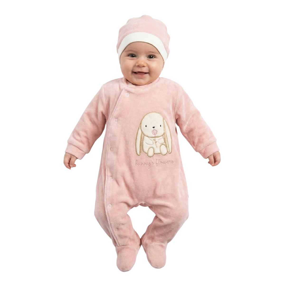 Efilix Baby ολόσωμο βελουτέ φορμάκι με σκουφάκι «Bunny’s Flowers»