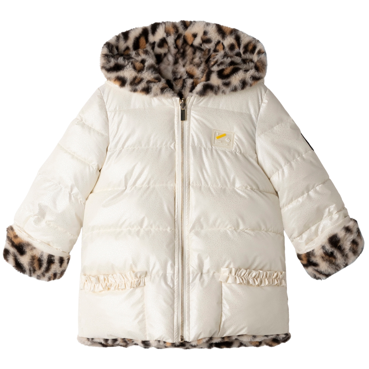 Το κοριτσίστικο μπουφάν διπλής όψης της Εβίτα είναι η απόλυτη επιλογή για τον χειμώνα, συνδυάζοντας στιλ και πρακτικότητα. Από τη μία πλευρά διαθέτει αδιάβροχο ύφασμα σε εκρού απόχρωση, ιδανικό για τις βροχερές μέρες, ενώ από την άλλη έχει απαλό συνθετικό γουνάκι σε εκρού με καφέ λεοπάρ σχέδιο για πιο κομψές εμφανίσεις. Η κουκούλα και οι τσέπες και στις δύο όψεις προσφέρουν άνεση και προστασία, ενώ το μπροστινό φερμουάρ εξασφαλίζει εύκολη εφαρμογή. Κατασκευασμένο από 100% πολυεστέρα, είναι ανθεκτικό, ζεστό και ιδανικό για τις χαμηλές θερμοκρασίες. Ένα κομψό, ζεστό και ευέλικτο μπουφάν που προσαρμόζεται σε κάθε στιλ και περίσταση, προσφέροντας δύο διαφορετικές επιλογές σε ένα κομμάτι.