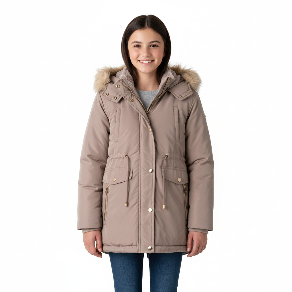 16 ετώνKarino Kids μπουφάν με κουκούλα γουνάκι αποσπώμενα «Pink Beauty»