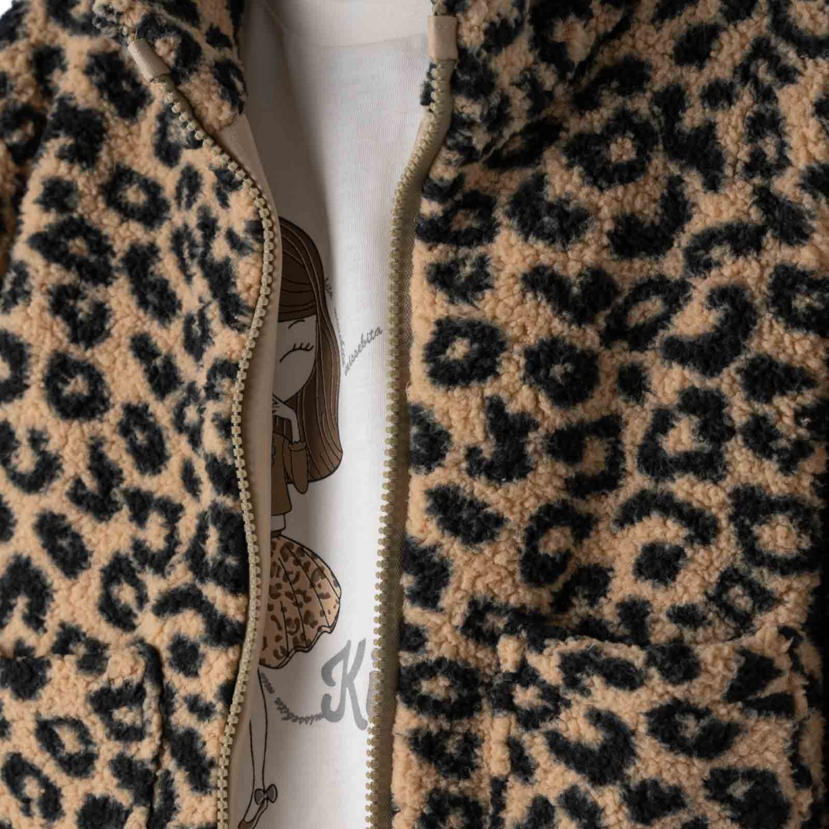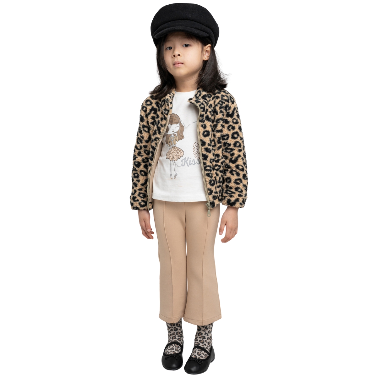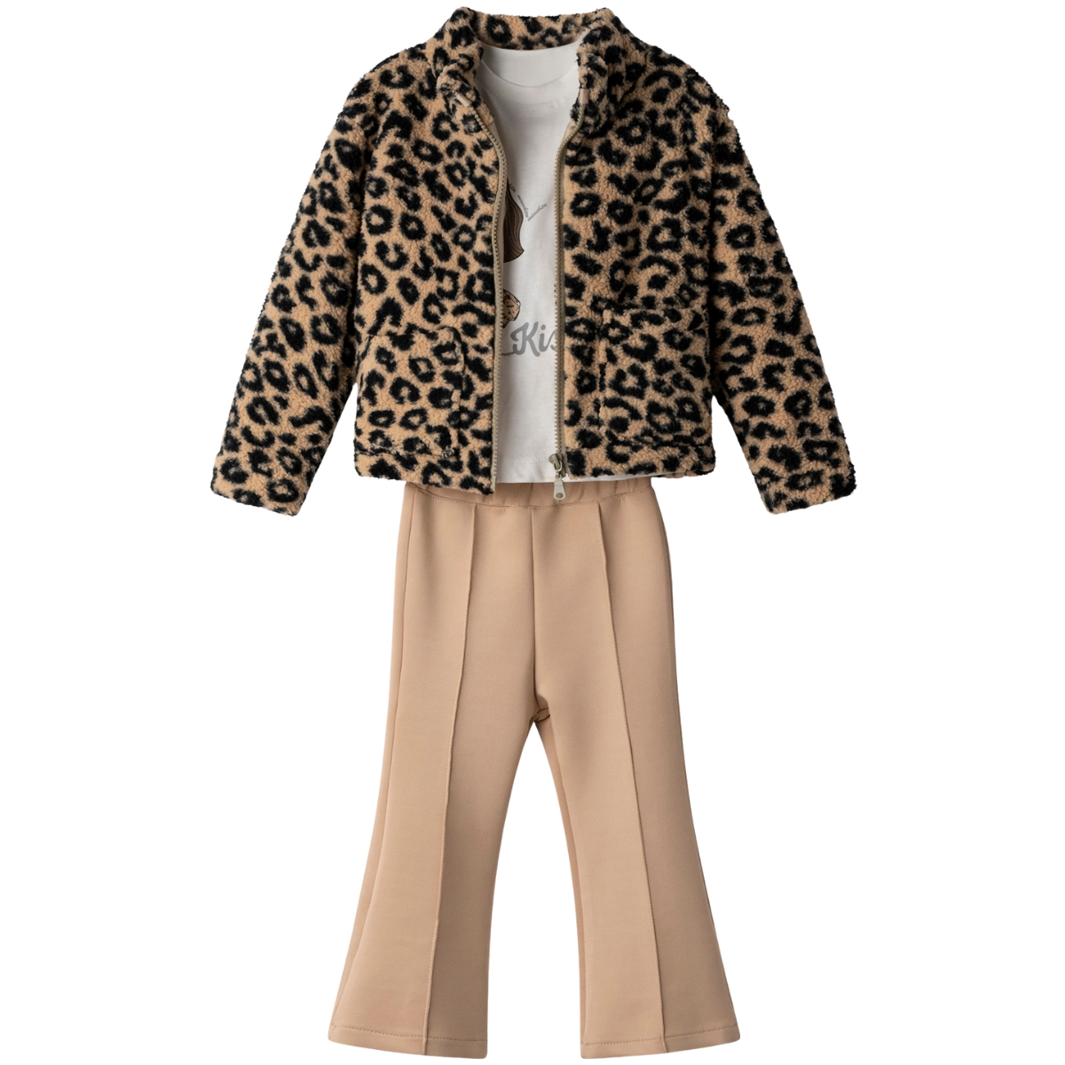 Ανανεώστε τη χειμερινή γκαρνταρόμπα της μικρής σας με αυτό το στιλάτο σετ της Εβίτα που συνδυάζει άνεση και ιδιαίτερο design. Η γούνινη ζακέτα σε λεοπάρ χρώμα ξεχωρίζει με το φερμουάρ και τις πρακτικές τσέπες εμπρός, ενώ η σατέν φόδρα που έχει στο εσωτερικό προσφέρει επιπλέον ζεστασιά και απαλότητα. Η ζακέτα αποτελείται από 57% πολυεστέρα, 30% βαμβάκι, 10% βισκόζη και 3% λύκρα, εξασφαλίζοντας άνεση και διαχρονικό στιλ. Η μακρυμάνικη μπλούζα σε εκρού απόχρωση είναι φτιαγμένη από 95% βαμβάκι και 5% λύκρα, προσφέροντας απαλότητα και ελευθερία κινήσεων, με όμορφο τύπωμα στο μπροστινό μέρος. Το μπεζ παντελόνι σε flair γραμμή διαθέτει λάστιχο στη μέση για ιδανική εφαρμογή και αποτελείται από 100% πολυεστέρα, ιδανικό για τις χειμωνιάτικες μέρες. Με αυτό το σετ, η μικρή σας θα είναι πάντα άνετη και στιλάτη κάθε μέρα του χειμώνα.