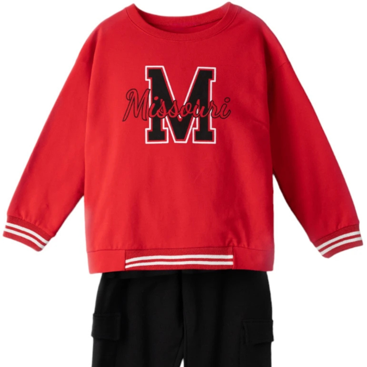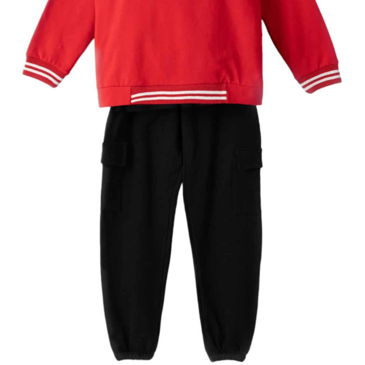 Ζεστή επιλογή για τις καθημερινές δραστηριότητες, το παιδικό σετ φόρμας με χνούδι της Εβίτα συνδυάζει κόκκινη μπλούζα με μαύρο παντελόνι για αθλητική εμφάνιση. Η μπλούζα έχει τύπωμα στο εμπρός μέρος και τελειώματα με λάστιχο σε λαιμό, μανίκια και κάτω μέρος για σταθερή εφαρμογή. Το παντελόνι διαθέτει τσέπες, καθώς και λάστιχο περιμετρικά στη μέση και στο τελείωμα για άνεση σε κάθε κίνηση. Η σύνθεση από 95% βαμβάκι και 5% ελαστάνη προσφέρει απαλότητα, ελαστικότητα και ζεστή αίσθηση χάρη στο εσωτερικό χνούδι. Σχεδιασμένο για κορίτσια, αποτελεί πρακτική λύση για τον χειμώνα, ιδανική για σχολείο, βόλτες και παιχνίδι.