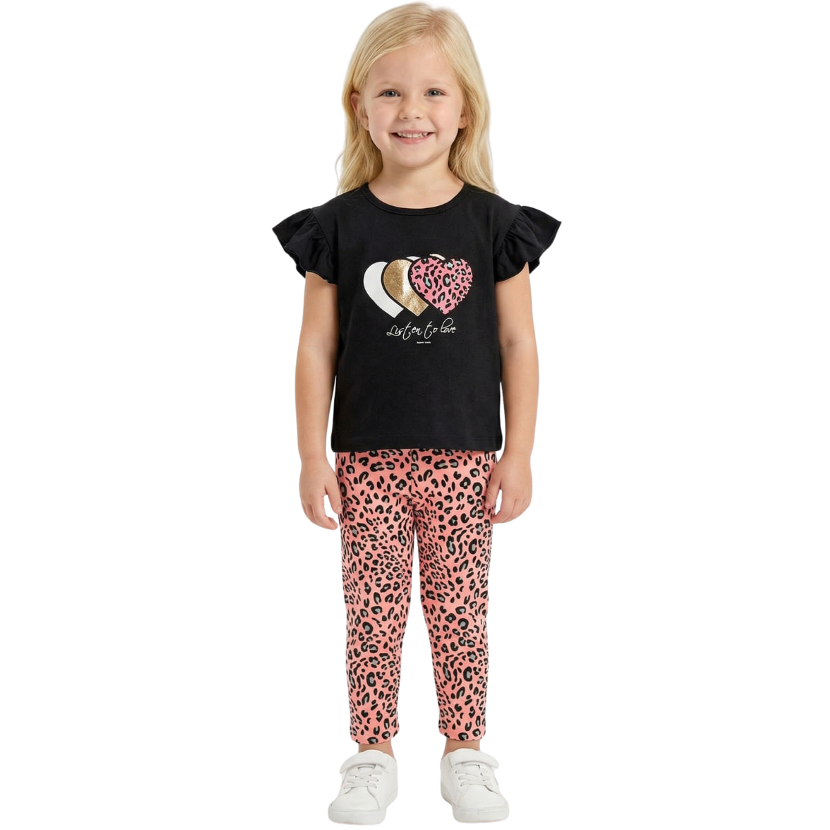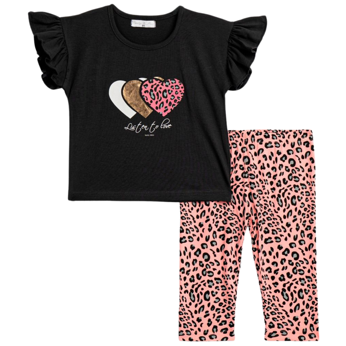 Αυτό το σετ από τη Funky είναι μια υπέροχη επιλογή για να συνοδεύσει τα κοριτσάκια σας στις καλοκαιρινές τους περιπέτειες. Η γκρι κοντομάνικη μπλούζα έχει μια όμορφη στάμπα με καρδούλες που δίνει μια τρυφερή νότα στην εμφάνιση, ενώ το κολάν κάπρι σε σομόν χρώμα με λεοπάρ σχέδιο προσθέτει μια παιχνιδιάρικη πινελιά. Το σύνολο είναι φτιαγμένο από 95% βαμβάκι και 5% ελαστάνη, εξασφαλίζοντας την απαραίτητη άνεση και ελευθερία κινήσεων για το παιχνίδι. Το κολάν διαθέτει λάστιχο περιμετρικά στη μέση για να παραμένει σταθερό χωρίς να πιέζει τη μικρή σας, κάνοντας το καθημερινό ντύσιμο πολύ εύκολο. Πρόκειται για έναν στιλάτο συνδυασμό που προσφέρει δροσιά και ευκολία καθ’ όλη τη διάρκεια της ημέρας, είτε βρίσκεστε στη βόλτα είτε στην παιδική χαρά.