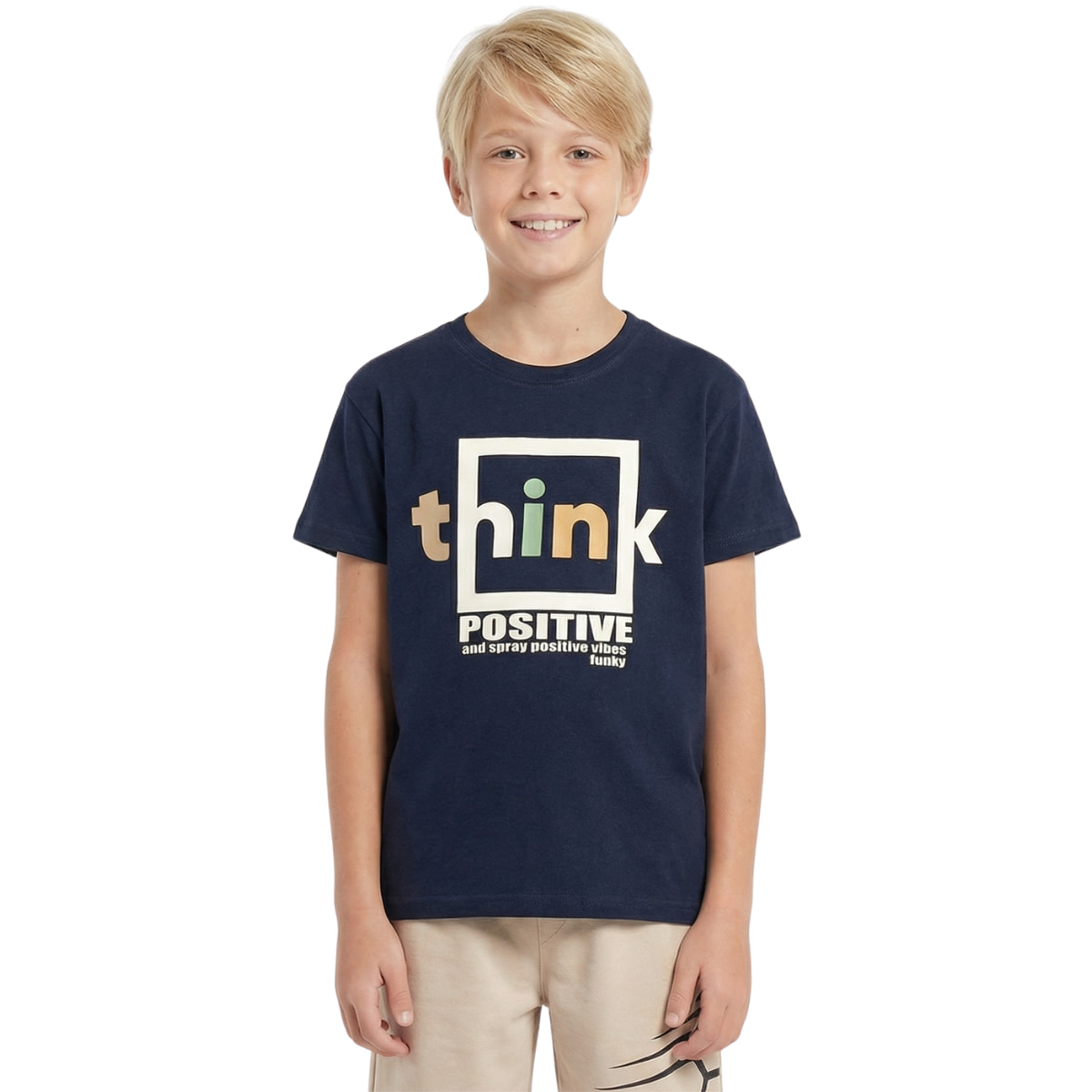 Funky κοντομάνικη μπλούζα με τύπωμα «Think Positive»