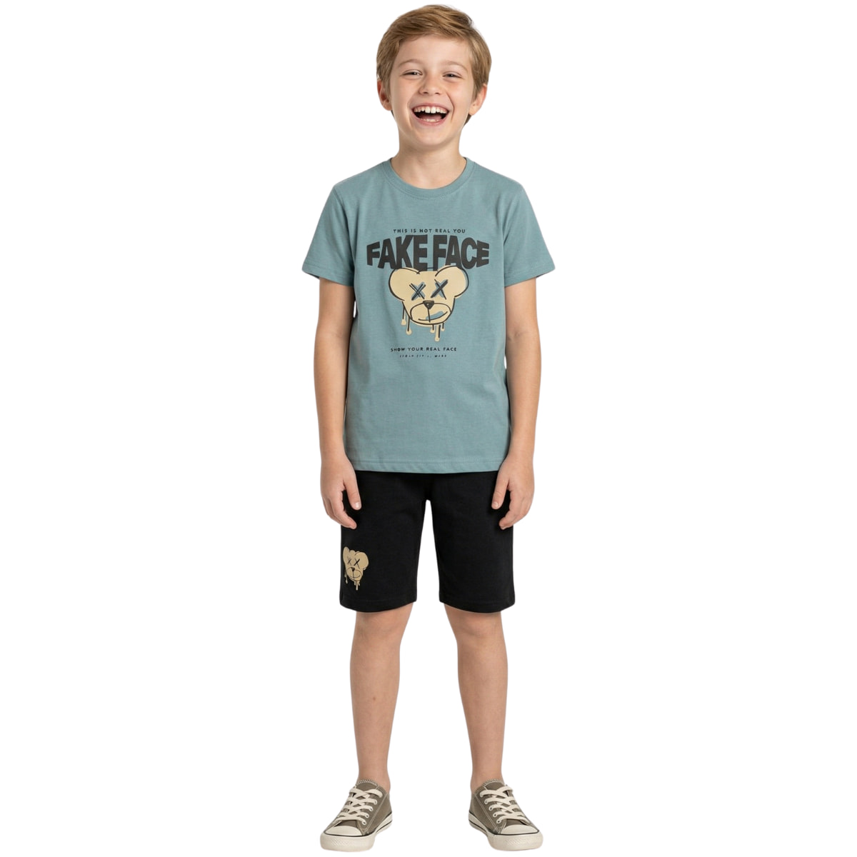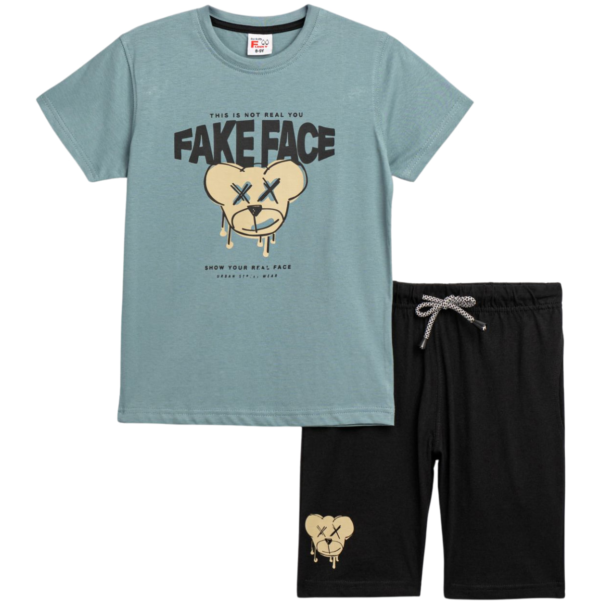 Funky σετ μπλουζάκι με βερμούδα «Fake Face»
