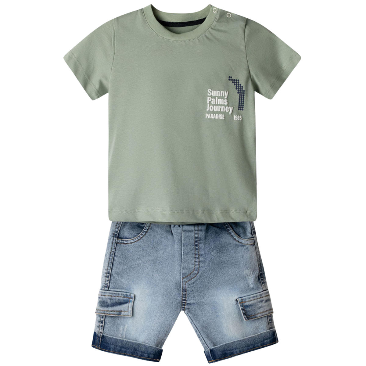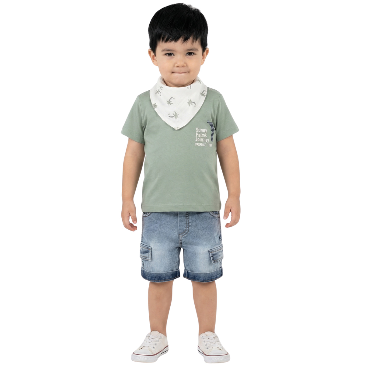 Hashtag βρεφικό σετ μπλούζα, τζιν σορτσάκι και μαντήλι «Sunny Palms Journey»