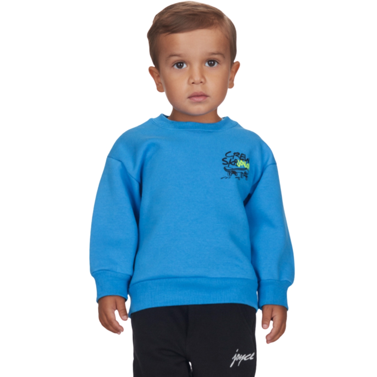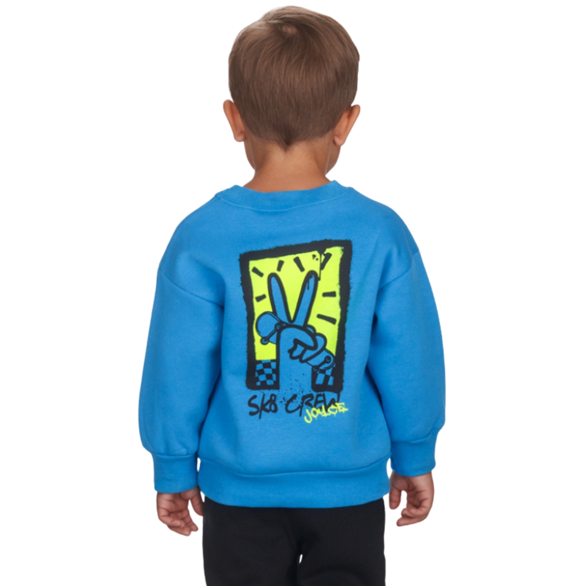 Το μπλε φούτερ με χνούδι της Joyce είναι μια ζεστή και πρακτική επιλογή για τον χειμώνα. Με σύνθεση 80% βαμβάκι και 20% πολυεστέρα, προσφέρει απαλή αίσθηση και αντοχή στην καθημερινή χρήση. Η χνουδωτή επένδυση κρατάει το παιδί ζεστό, ενώ το τύπωμα τόσο στο μπροστινό όσο και στο πίσω μέρος δίνει δυναμικό και μοντέρνο χαρακτήρα. Τα λάστιχα σε λαιμό, μανίκια και τελείωμα εξασφαλίζουν σωστή εφαρμογή και άνεση σε κάθε κίνηση. Σε κλασικό μπλε χρώμα που ταιριάζει εύκολα με κάθε παντελόνι ή φόρμα, αποτελεί ιδανική επιλογή για το σχολείο, τις βόλτες και τις δραστηριότητες του χειμώνα.
