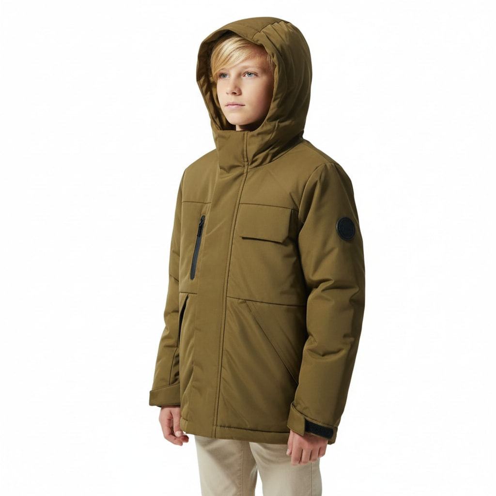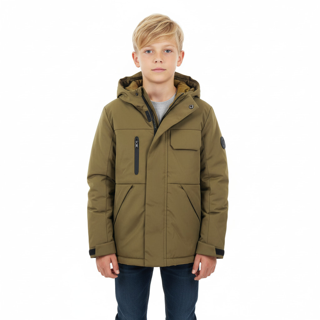 Το χειμερινό μπουφάν της Joyce σε υπέροχο λαδί χρώμα είναι ιδανικό για τους μικρούς εξερευνητές που αναζητούν άνεση και πρακτικότητα. Κατασκευασμένο από 100% πολυεστέρα, προσφέρει αντοχή και ευκολία στη φροντίδα για τις καθημερινές περιπέτειες. Η κουκούλα παρέχει επιπλέον προστασία από τον αέρα, ενώ το διπλό σύστημα ασφάλισης με φερμουάρ και κουμπιά εξασφαλίζει σταθερό κλείσιμο. Επιπρόσθετα, τα μανίκια διαθέτουν κλείσιμο με βέλκρο για καλύτερη εφαρμογή και προστασία από το κρύο. Οι πρακτικές τσέπες συμπληρώνουν τη λειτουργικότητα αυτού του στιλάτου μπουφάν που απευθύνεται ειδικά σε αγόρια και αποτελεί την τέλεια επιλογή για τη χειμερινή γκαρνταρόμπα.