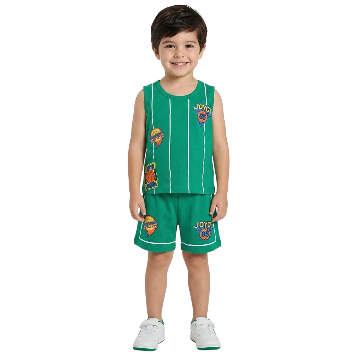 Joyce σετ αμάνικη μπλούζα με σορτσάκι «Green Hoops»