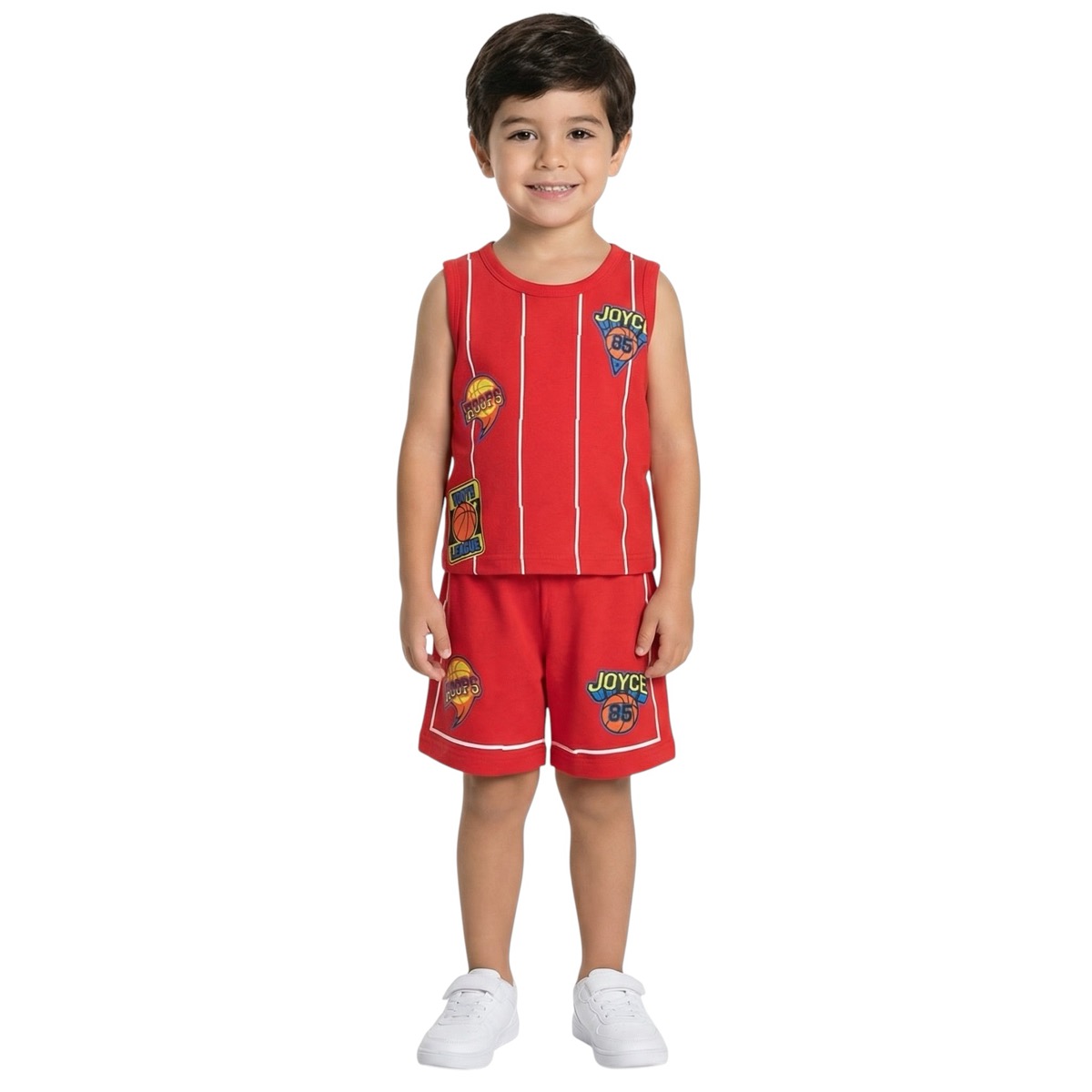 Το καλοκαίρι γίνεται ακόμα πιο διασκεδαστικό με το σετ Joyce για αγόρια! Η αμάνικη μπλούζα σε έντονο κόκκινο χρώμα διαθέτει μοντέρνο τύπωμα στο μπροστινό μέρος, χαρίζοντας στυλ και παιχνιδιάρικη διάθεση. Το σορτσάκι, με λάστιχο στη μέση για τέλεια εφαρμογή, εξασφαλίζει απόλυτη άνεση και ελευθερία κινήσεων. Κατασκευασμένο από 100% βαμβάκι, το σετ είναι απαλό, δροσερό και ιδανικό για τις ζεστές καλοκαιρινές ημέρες, επιτρέποντας στο δέρμα να αναπνέει. Ιδανικό για βόλτες, παιχνίδι και καλοκαιρινές εξορμήσεις, αποτελεί την τέλεια επιλογή για άνεση και στυλ όλη μέρα!