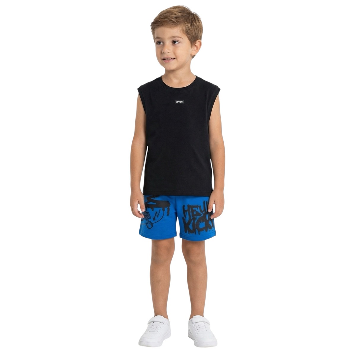 Το καλοκαιρινό σετ Joyce για αγόρια συνδυάζει άνεση και μοντέρνο στυλ για κάθε περίσταση! Η μαύρη αμάνικη μπλούζα από 100% βαμβάκι προσφέρει δροσερή αίσθηση και ελευθερία κινήσεων, ιδανική για τις ζεστές ημέρες. Η μπλε βερμούδα με πρακτικές τσέπες και ελαστική μέση εξασφαλίζει τέλεια εφαρμογή και απόλυτη άνεση. Ένα ελαφρύ, εύκολο στη χρήση και στιλάτο σύνολο, ιδανικό για παιχνίδι, βόλτες και καλοκαιρινές εξορμήσεις!