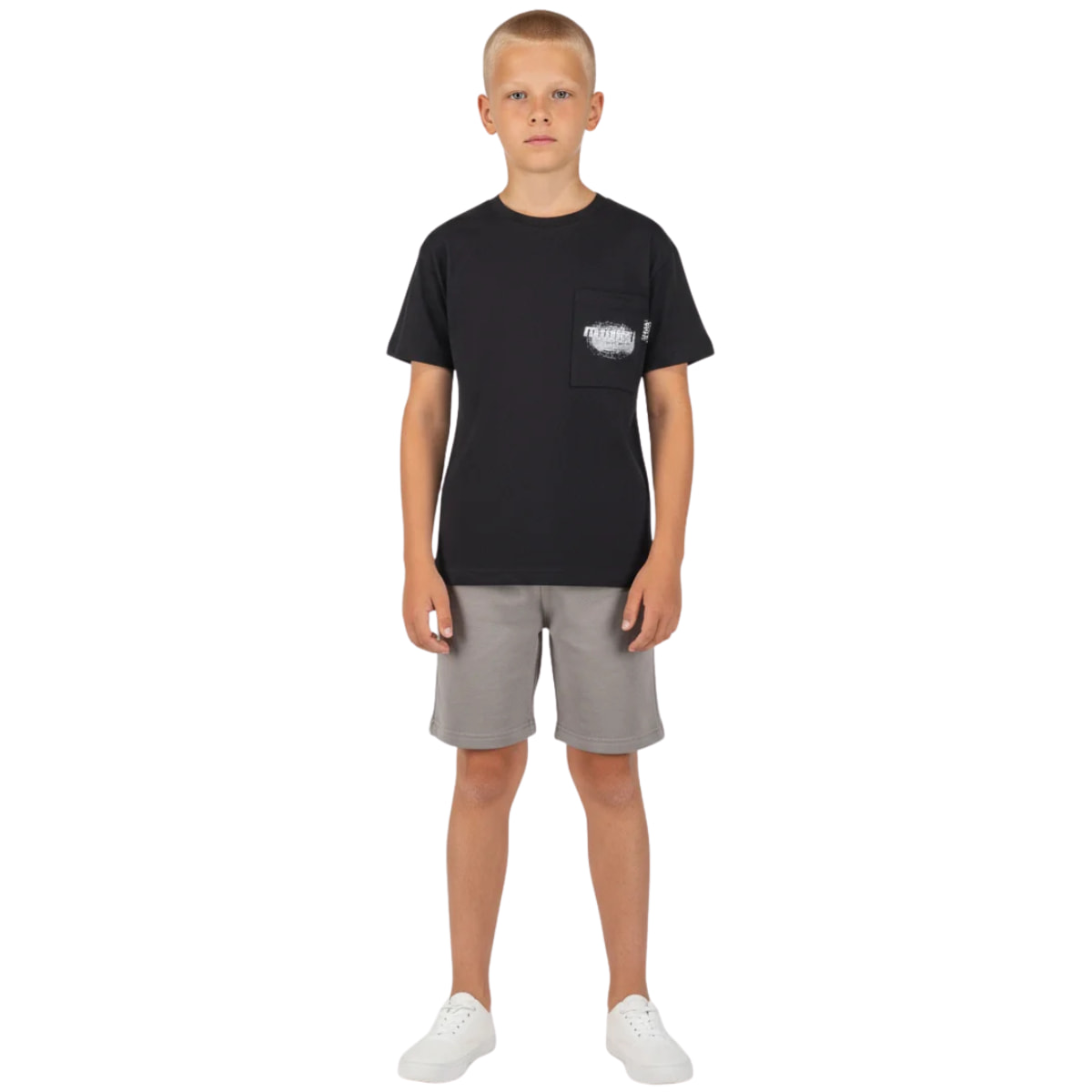 Το σετ από τη Joyce είναι μια φωτεινή και χαρούμενη πρόταση για τις καθημερινές εμφανίσεις των μικρών σας αγοριών. Αποτελείται από μια μαύρη κοντομάνικη μπλούζα που κεντρίζει το ενδιαφέρον χάρη στην τσέπη εμπρός και το τύπωμα που υπάρχει τόσο στο μπροστινό όσο και στο πίσω μέρος. Ολοκληρώνεται όμορφα με την γκρι βερμούδα, η οποία έχει πρακτικές τσέπες και λάστιχο περιμετρικά στη μέση, προσφέροντας τη σταθερότητα που χρειάζονται όταν τρέχουν και παίζουν. Η σύνθεσή του από 100% βαμβάκι εξασφαλίζει ότι το ευαίσθητο παιδικό δερματάκι δεν ερεθίζεται και παραμένει άνετο καθ’ όλη τη διάρκεια της ημέρας μέσα στο καλοκαίρι. Αποτελεί μια έτοιμη λύση για την ντουλάπα τους, κατάλληλη για τις διακοπές ή την παιδική χαρά, χαρίζοντας στα παιδιά ένα προσεγμένο στιλ. Μπορείτε να το ταιριάξετε πανεύκολα με τα αγαπημένα τους αθλητικά παπούτσια ή πέδιλα.
