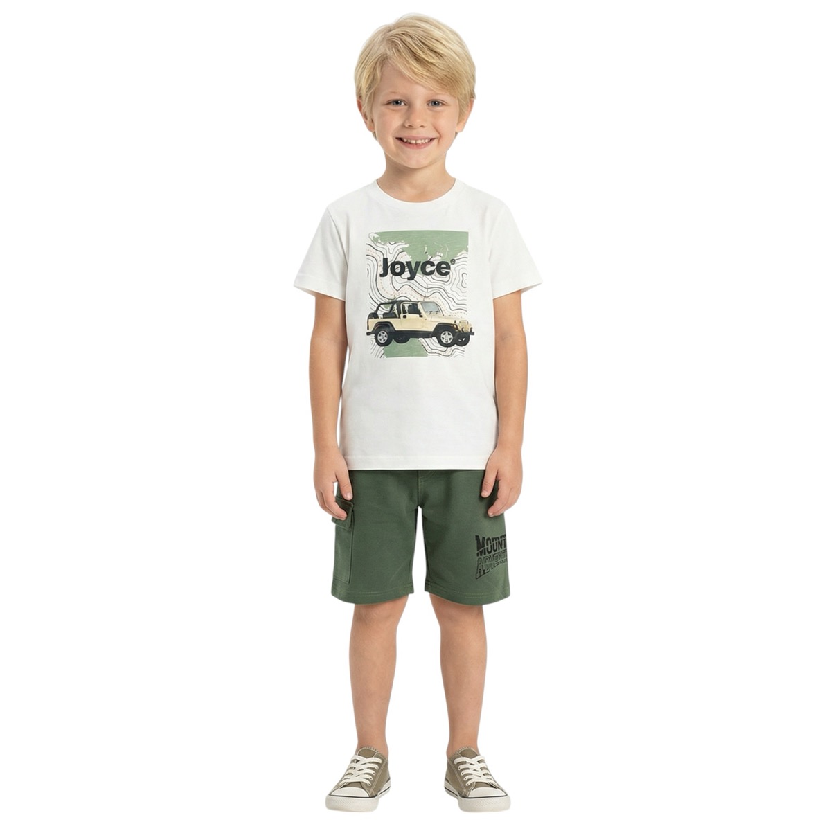 Δροσερό και καθημερινό, το σετ Joyce για αγόρια είναι η ιδανική επιλογή για τις καλοκαιρινές περιπέτειες. Η λευκή μπλούζα με τύπωμα προσφέρει μοντέρνα αισθητική. Συνδυάζεται άψογα με την πράσινη βερμούδα που διαθέτει πρακτικές τσέπες και ελαστική μέση, χαρίζοντας άνεση σε κάθε δραστηριότητα. Φτιαγμένο από 100% βαμβάκι, το σετ εξασφαλίζει φυσική απαλότητα και ελευθερία κινήσεων, ιδανικό για παιχνίδι ή βόλτες. Ένα εύχρηστο και στιλάτο σύνολο που ξεχωρίζει για τη φρεσκάδα και την πρακτικότητα του.