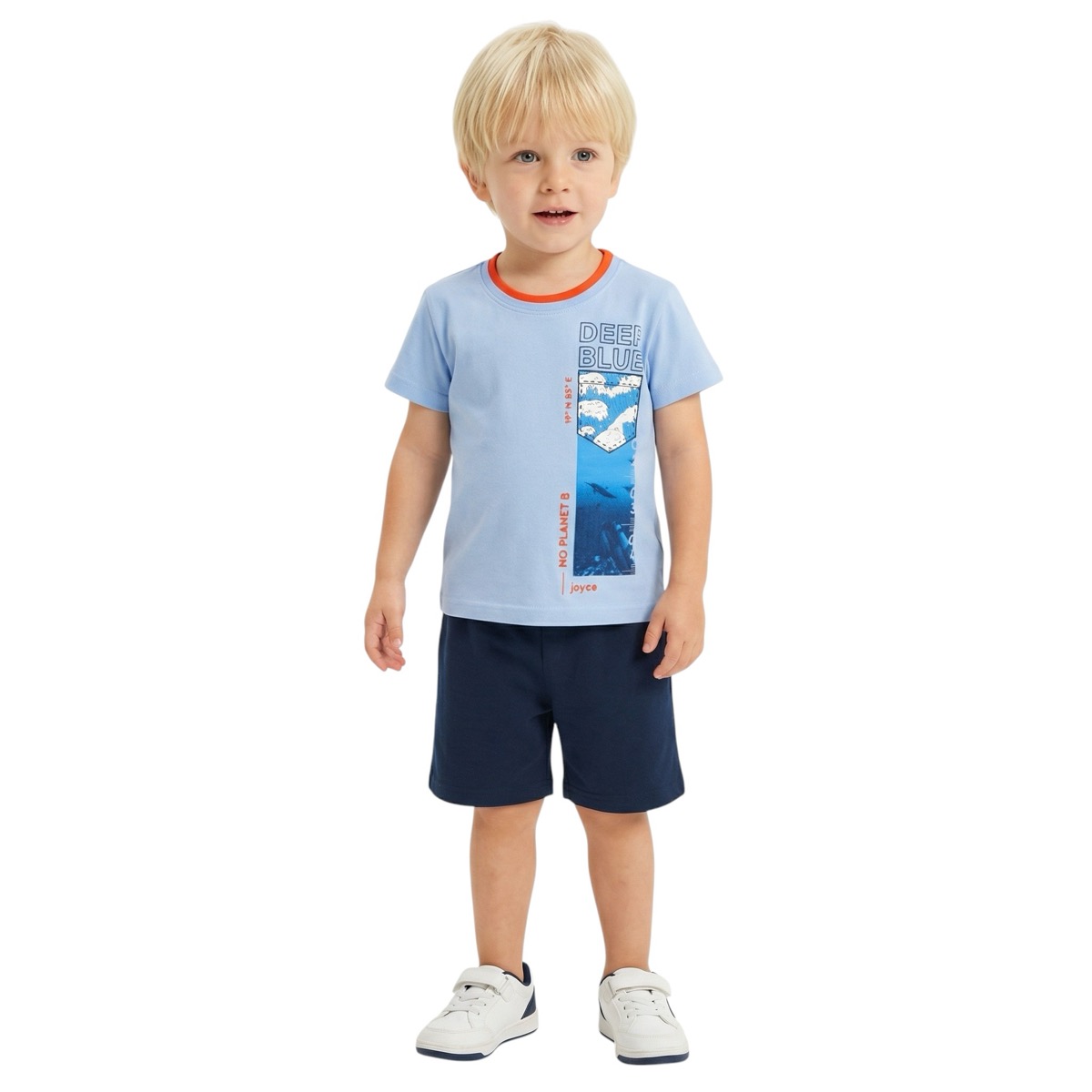Το καλοκαιρινό σετ Joyce για αγοράκια προσφέρει άνεση και στυλ στις καλοκαιρινές εμφανίσεις! Η γαλάζια μπλούζα από 100% βαμβάκι διαθέτει εντυπωσιακό τύπωμα στο μπροστινό μέρος, προσθέτοντας παιχνιδιάρικη διάθεση. Η μπλε βερμούδα από πικέ ύφασμα είναι ελαφριά και αέρινη, ιδανική για τις ζεστές ημέρες. Χάρη στο λάστιχο περιμετρικά στη μέση, εφαρμόζει τέλεια και επιτρέπει ελευθερία κινήσεων, προσφέροντας άνεση σε κάθε δραστηριότητα. Ένα δροσερό και πρακτικό σύνολο που ταιριάζει ιδανικά σε καθημερινές και casual εμφανίσεις. Επιλέξτε το για ατελείωτο παιχνίδι με στυλ!