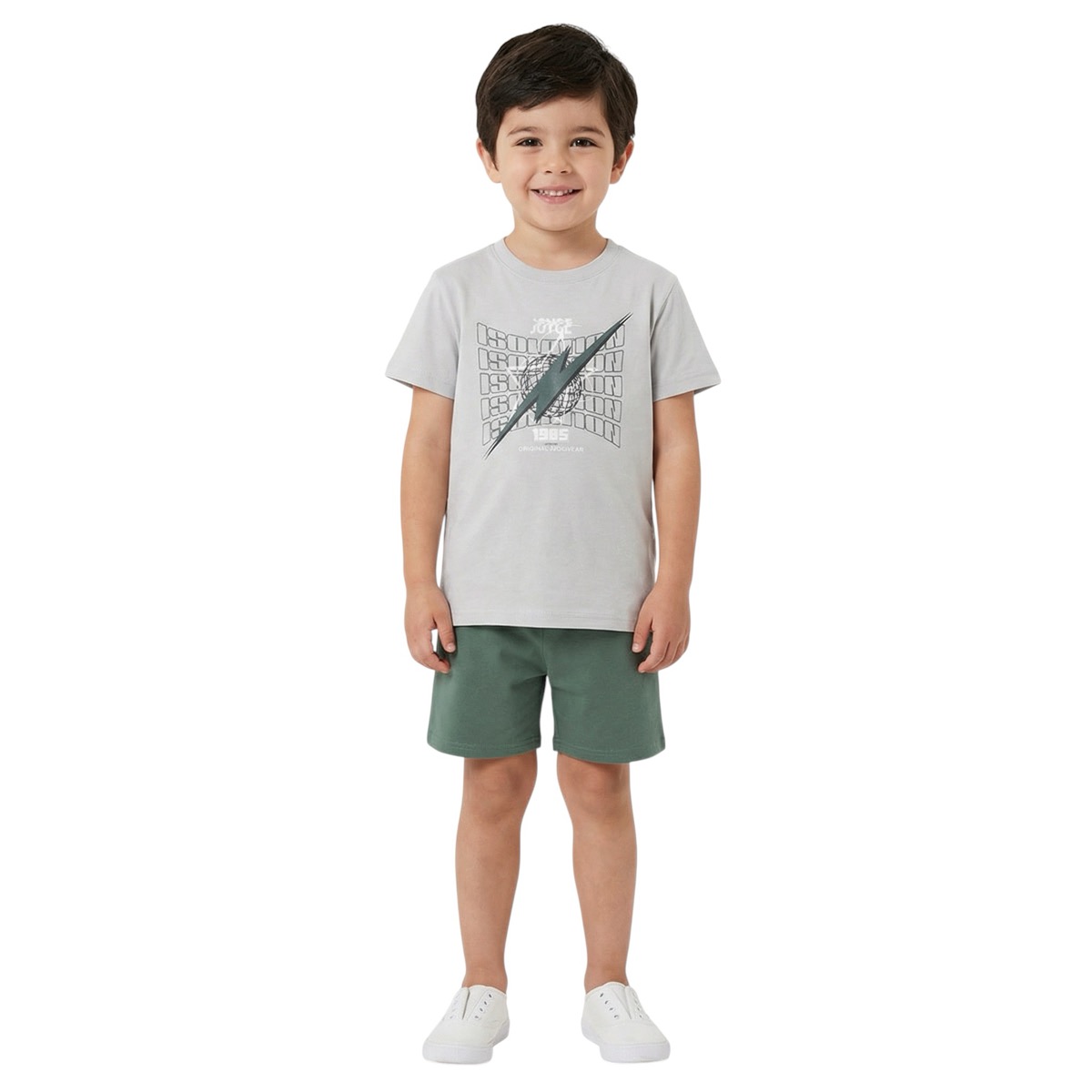 Το παιδικό σετ Joyce για αγόρια είναι η ιδανική επιλογή για καλοκαιρινές εμφανίσεις με άνεση και στυλ! Η μπεζ μπλούζα διαθέτει μοντέρνα στάμπα στο μπροστινό μέρος, προσδίδοντας μοναδική παιχνιδιάρικη διάθεση, ενώ η πράσινη βερμούδα με τσέπες και λάστιχο στη μέση προσφέρει εξαιρετική εφαρμογή και πρακτικότητα για καθημερινές δραστηριότητες. Κατασκευασμένο από 100% βαμβάκι, το σετ εξασφαλίζει δροσερή αίσθηση ακόμα και στις πιο ζεστές ημέρες. Ιδανικό για παιχνίδι, βόλτες και καλοκαιρινές εξορμήσεις, συνδυάζει την άνεση με το μοντέρνο design για ένα ολοκληρωμένο casual look!