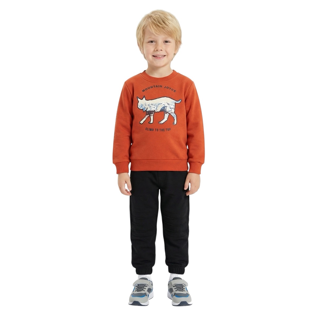 Το σετ φόρμας με χνούδι της Joyce είναι η ιδανική επιλογή για τους γονείς που επιθυμούν να κρατήσουν τα αγοράκια τους άνετα και στιλάτα τον χειμώνα. Η μπλούζα σε καφέ απόχρωση διαθέτει εντυπωσιακό τύπωμα στο εμπρός μέρος, ενώ το λάστιχο στο λαιμό, στα μανίκια και περιμετρικά στο τελείωμα προσφέρει άριστη εφαρμογή και άνεση. Το παντελόνι, σε κλασικό μαύρο χρώμα, διαθέτει λάστιχο στη μέση και στο τελείωμα, εξασφαλίζοντας ελευθερία κινήσεων για παιχνίδια και δραστηριότητες. Κατασκευασμένο από 80% βαμβάκι και 20% πολυεστέρα, το ύφασμα του είναι μαλακό και ζεστό, ιδανικό για τις κρύες ημέρες. Το καφέ και μαύρο χρώμα δημιουργεί μία μοντέρνα και ευχάριστη εμφάνιση, τέλεια για καθημερινές εξόδους. Επιλέξτε το σετ φόρμας Joyce για να προσφέρετε στο παιδί σας άνεση και στυλ σε κάθε του περιπέτεια!