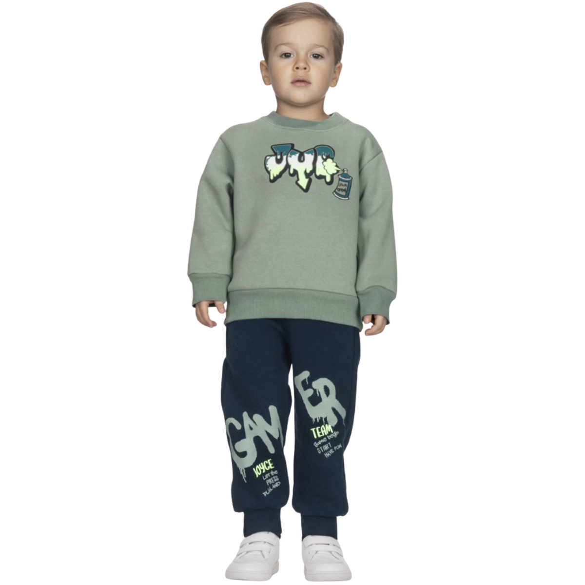 Το παιδικό σετ φόρμας της Joyce συνδυάζει χρώμα και άνεση για τις χειμωνιάτικες μέρες. Η πράσινη φούτερ μπλούζα με τύπωμα εμπρός προσφέρει ένα νεανικό και ζωντανό look. Το μπλε παντελόνι με στάμπες και λάστιχο περιμετρικά στη μέση και στο κάτω μέρος εξασφαλίζει σταθερή εφαρμογή και ελευθερία κινήσεων. Και τα δύο κομμάτια διαθέτουν εσωτερική επένδυση με χνούδι που κρατά το αγόρι ζεστό και άνετο όλη την ημέρα. Με σύνθεση 80% βαμβάκι και 20% πολυεστέρα, το σετ αυτό είναι η ιδανική επιλογή για παιχνίδι, σχολείο και καθημερινές εξόδους τον χειμώνα.