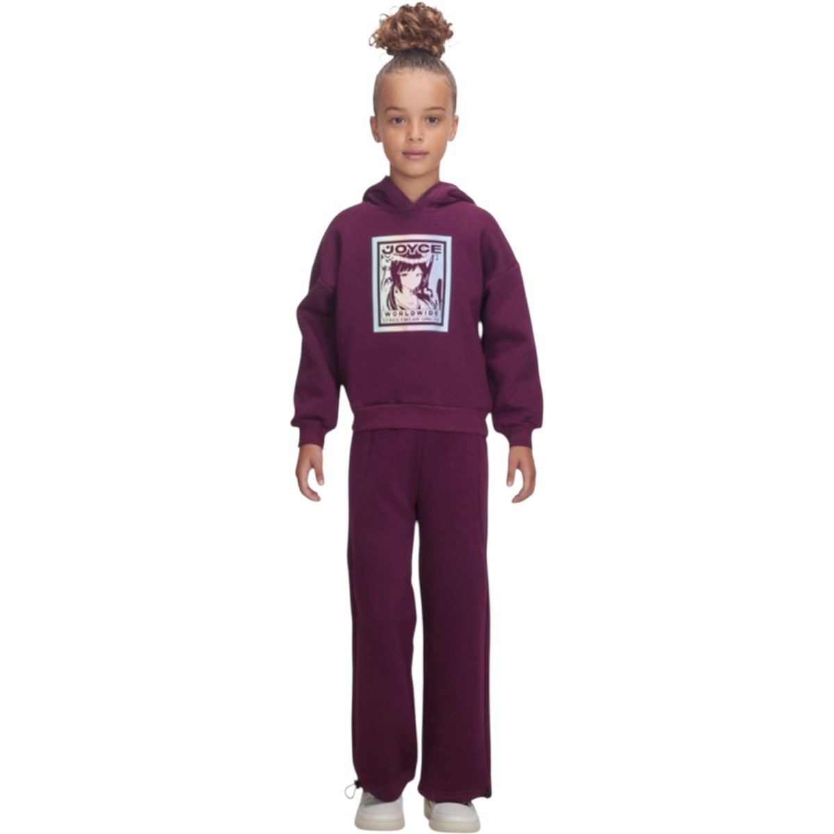 Το σετ φόρμας Joyce με κουκούλα και χνούδι είναι μια ιδανική πρόταση για το χειμερινό ντύσιμο των μικρών κοριτσιών. Σε έντονο μοβ χρώμα που προσθέτει ζωντάνια στο καθημερινό ντύσιμο, η μπλούζα διαθέτει κουκούλα και πανέμορφη στάμπα στο εμπρός μέρος, ενώ τα λάστιχα στα μανίκια και στο κάτω μέρος εξασφαλίζουν σταθερή εφαρμογή και προστασία από το κρύο. Το παντελόνι διαθέτει λάστιχο στη μέση και ρυθμιζόμενο λάστιχο στα τελειώματα, προσαρμοζόμενο σε κάθε κίνηση, κάνοντας το κατάλληλο για ασταμάτητο παιχνίδι. Η σύνθεση 80% βαμβακιού και 20% πολυεστέρα εξασφαλίζει απαλή υφή και αντοχή, που χρειάζονται τα παιδικά ρούχα για τα απαιτητικά χειμερινά παιχνίδια. Επιλέξτε τα ποιοτικά παιδικά ρούχα Joyce για άνεση, στυλ και ζεστασιά σε κάθε περίσταση.