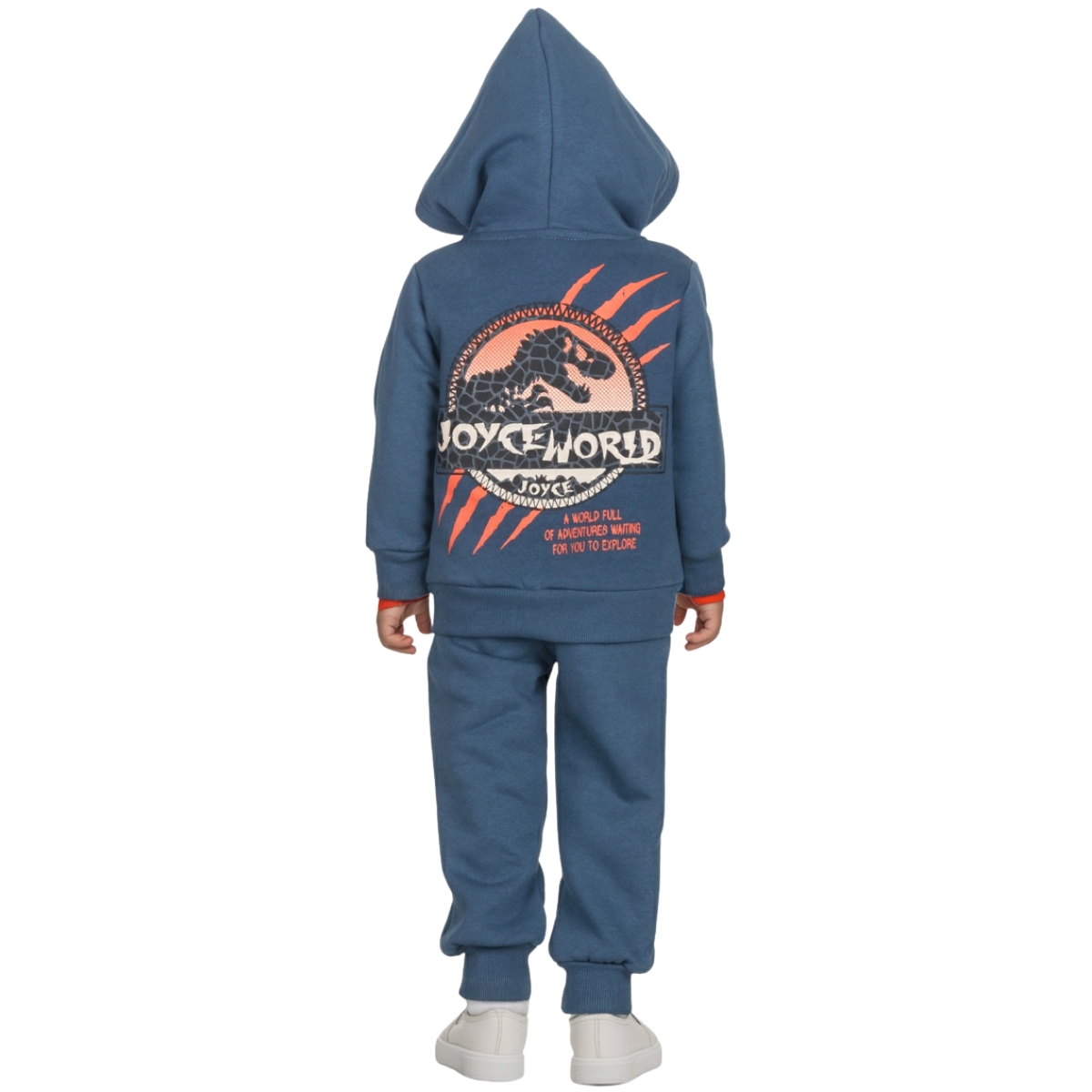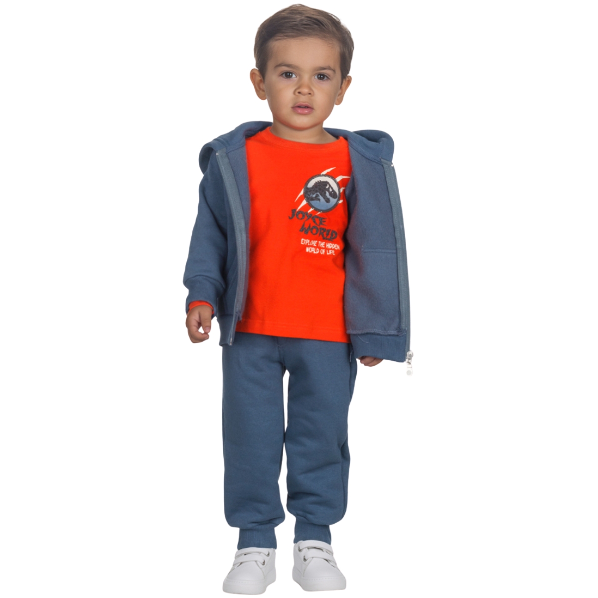 Το σετ φόρμας τριών τεμαχίων της Joyce είναι μια πρακτική και στιλάτη λύση για τον χειμώνα. Η μπλε ζακέτα με κουκούλα και άνοιγμα με φερμουάρ διαθέτει τσέπες στο εμπρός μέρος για επιπλέον λειτουργικότητα, ενώ το λάστιχο στα μανίκια και στο τελείωμα εξασφαλίζει ζεστασιά και άψογη εφαρμογή. Η πορτοκαλί μακό μπλούζα από λεπτό ύφασμα με στάμπα προσθέτει χρώμα και ζωντάνια στο σύνολο. Το μπλε παντελόνι φόρμας με λάστιχο περιμετρικά στη μέση και στο τελείωμα προσφέρει άνεση και ελευθερία κινήσεων. Η μπλούζα είναι από 95% βαμβάκι και 5% ελαστάνη, ενώ η ζακέτα και το παντελόνι από 80% βαμβάκι και 20% πολυεστέρα, δημιουργώντας ένα ολοκληρωμένο σετ για κάθε καθημερινή δραστηριότητα του αγοριού σας.