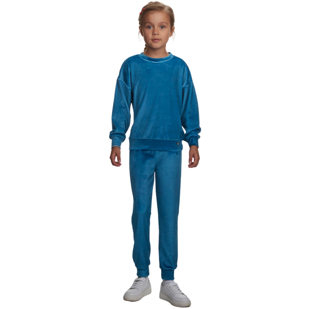 Το βελουτέ σετ της Joyce σε πετρόλ απόχρωση αποτελεί μια στιλάτη και άνετη λύση για τον χειμώνα. Η μπλούζα από απαλό βελουτέ ύφασμα διαθέτει λάστιχα στα μανίκια και στο τελείωμα που εξασφαλίζουν άψογη εφαρμογή. Το παντελόνι με λάστιχο περιμετρικά στη μέση και στο τελείωμα προσφέρει άνεση και ασφαλές κράτημα σε κάθε κίνηση. Με σύνθεση 95% βαμβάκι και 5% ελαστάνη, το σετ αυτό συνδυάζει την απαλότητα του βελουτέ με την ελαστικότητα που χρειάζεται το κορίτσι σας για να απολαμβάνει τις καθημερινές του δραστηριότητες με στιλ και χωρίς περιορισμούς.