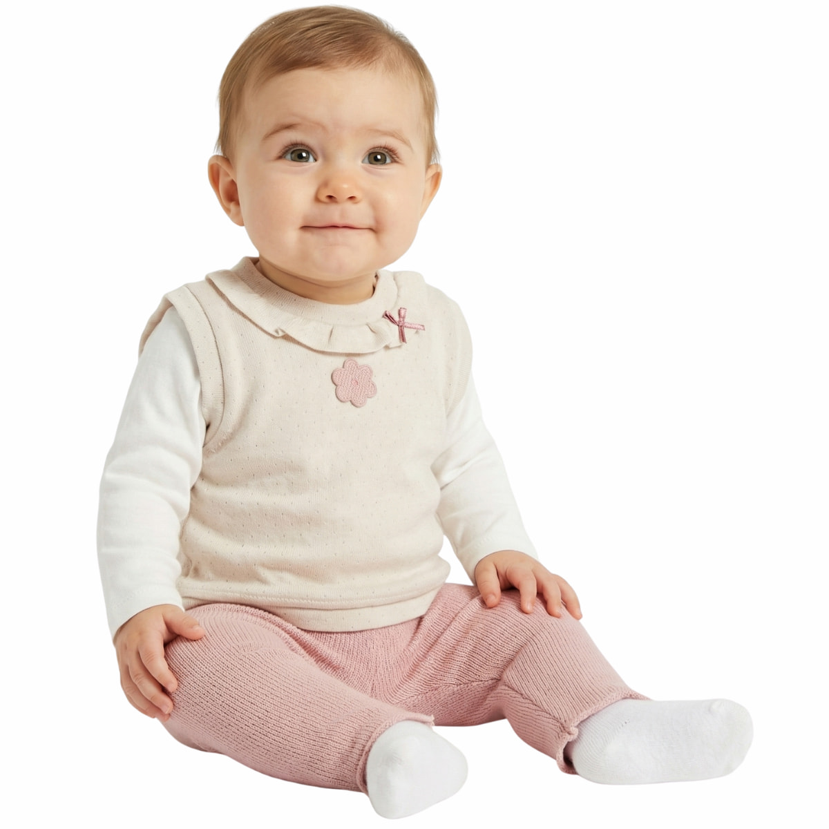 Joyol πλεκτό βρεφικό σετ γιλέκο, μπλούζα και παντελόνι «Knit Perfection»