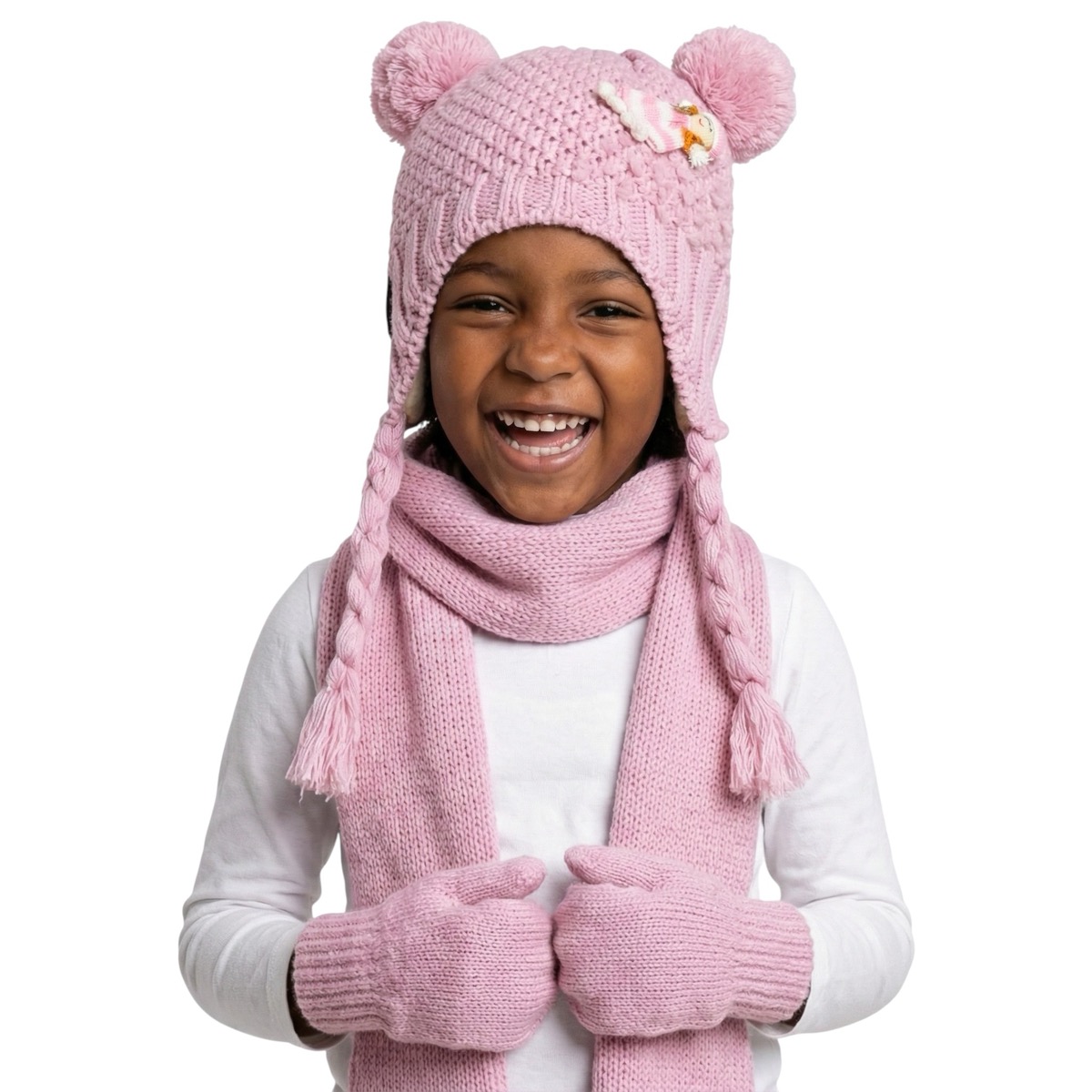 Juju πλεκτό σετ σκούφος-κασκόλ-γάντια «Pink Girl»