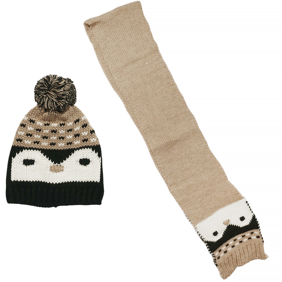 Το πλεκτό σετ της Kitti σε μπεζ και μαύρο χρώμα δίνει ξεχωριστό χαρακτήρα στις χειμερινές εμφανίσεις των αγοριών. Το σκουφάκι με τη μεγάλη φούντα στο επάνω μέρος και το κασκόλ διακοσμούνται με έναν πιγκουίνο, προσφέροντας μια παιχνιδιάρικη και ζεστή πινελιά. Η σύνθεση από 100% ακρυλικό εξασφαλίζει απαλή υφή και άνεση, ιδανική για καθημερινή χρήση στο σχολείο ή τη βόλτα. Ένα σετ που συνδυάζει πρακτικότητα και φαντασία, κρατώντας το παιδί σας προστατευμένο και στιλάτο όλο τον χειμώνα.