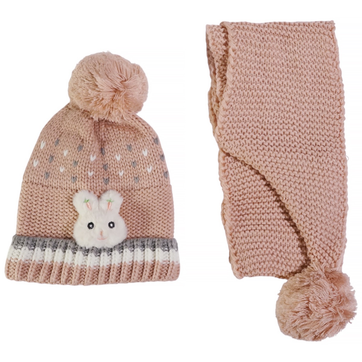 Kitti πλεκτό σετ σκούφος και κασκόλ «Salmon Carrot Rabbit»