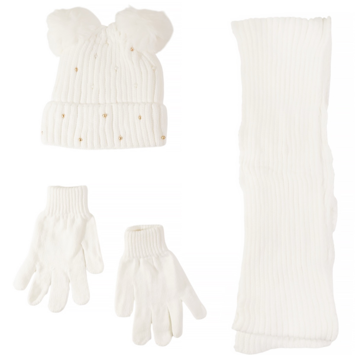Kitti πλεκτό σετ σκούφος-κασκόλ-γάντια «Ecru Pearls»