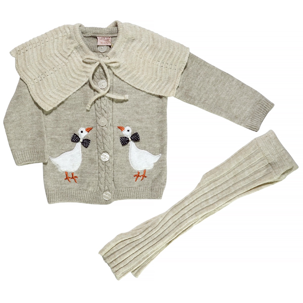 Το πλεκτό σετ της Lolitop είναι η τέλεια επιλογή για τα κοριτσάκια σας τον χειμώνα, προσφέροντας ζεστασιά και κομψό στιλ. Η μπεζ ζακέτα διαθέτει χαριτωμένα απλικέ σχέδια, μεγάλο γιακά που δένει εμπρός με κορδόνια και βγαίνει για περισσότερες επιλογές στιλ, καθώς και άνοιγμα με κουμπιά για μεγαλύτερη πρακτικότητα. Το παντελόνι σε μπεζ χρώμα και αυτό, έχει λάστιχο περιμετρικά στη μέση για άνετη εφαρμογή. Κατασκευασμένο από 100% ακρυλικό, το σετ εξασφαλίζει την ζεστασιά και την προστασία από το κρύο που χρειάζονται τα παιδιά τις χειμερινές μέρες, ενώ ο συνδυασμός των λεπτομερειών προσφέρει ένα κομψό και διακριτικό ντύσιμο για κάθε περίσταση.