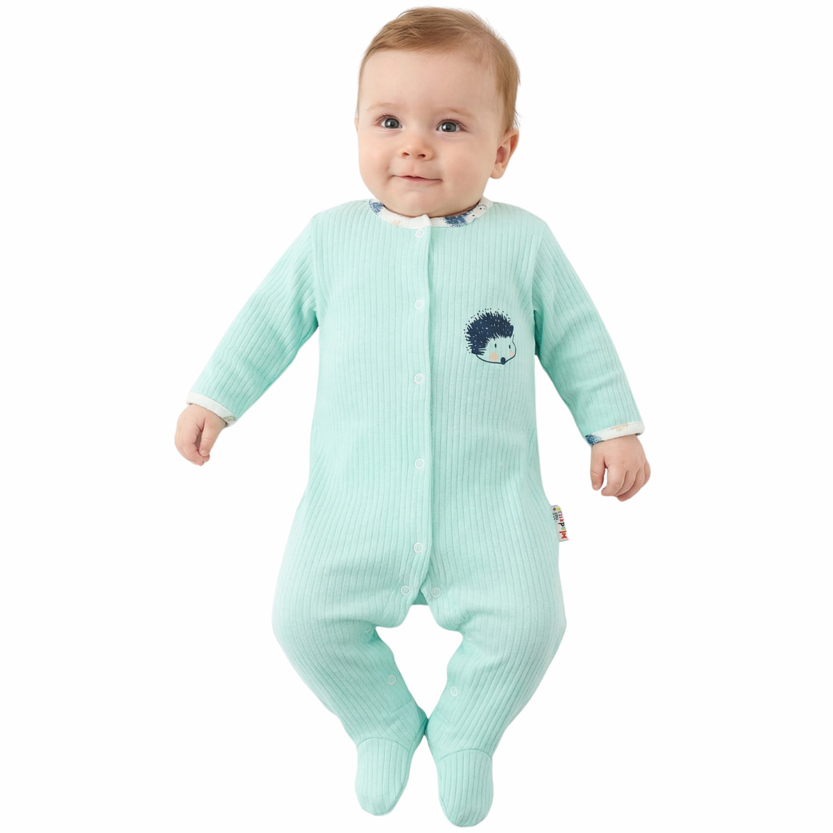 Το λεπτό φορμάκι από τη Midirik σε βεραμάν απόχρωση είναι μια υπέροχη προσθήκη για την γκαρνταρόμπα που ετοιμάζετε για τα μωράκια σας την άνοιξη και το φθινόπωρο. Η χαριτωμένη φιγούρα με το σκαντζοχοιράκι δίνει έναν παιχνιδιάρικο τόνο και κάνει το μωρό σας να δείχνει αξιολάτρευτο σε κάθε του εμφάνιση. Είναι φτιαγμένο από 100% βαμβάκι, εξασφαλίζοντας ότι το ύφασμα ακουμπά το δέρμα του με φυσικό και απαλό τρόπο, χωρίς να προκαλεί ενοχλήσεις. Παράλληλα, τα πρακτικά τρουκς που ανοίγουν από πάνω μέχρι κάτω διευκολύνουν σημαντικά την καθημερινότητά σας, επιτρέποντας την άμεση και εύκολη αλλαγή της πάνας οποιαδήποτε στιγμή. Μια επιλογή που συνδυάζει την ποιότητα με τη γλυκιά αισθητική για τα μικρά σας.