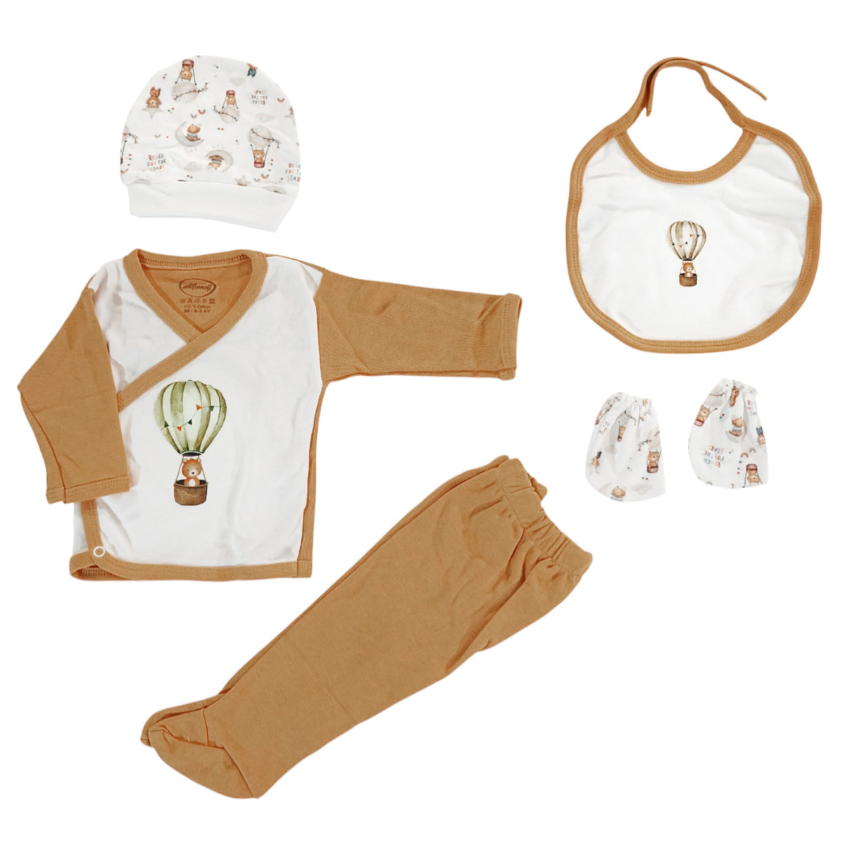 Misimosi Baby σετ δώρου για νεογέννητα πέντε τεμαχίων από λεπτό ύφασμα «Bear Journey»