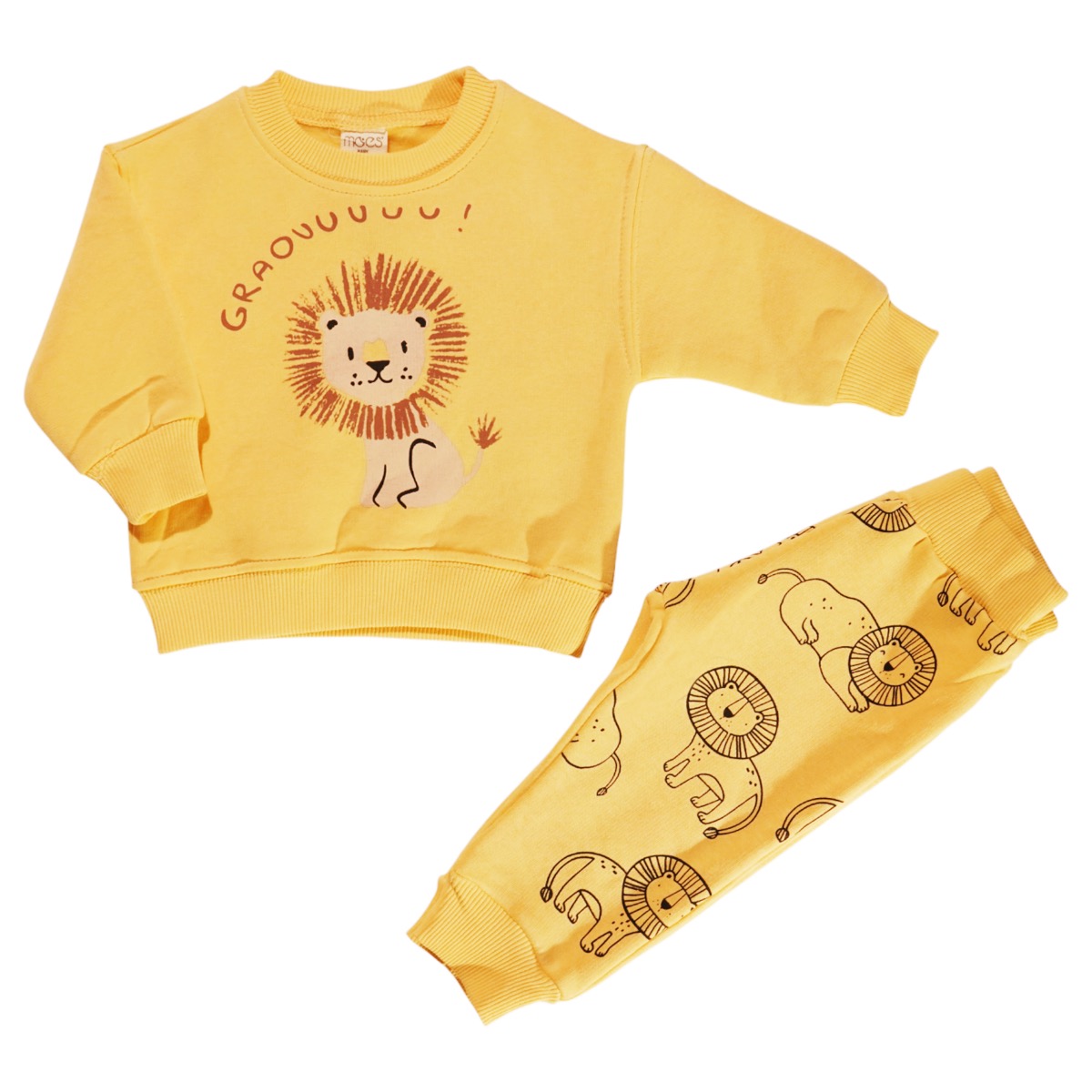 Το βρεφικό σετ φόρμας της Moes σε κίτρινο χρώμα φέρνει χαρούμενες νότες στις χειμωνιάτικες μέρες, προσφέροντας ζεστασιά και άνεση στο μικρό σας αγοράκι. Η μπλούζα διαθέτει τύπωμα στο εμπρός μέρος, ενώ το λάστιχο στο λαιμό, στα μανίκια και περιμετρικά στο τελείωμα εξασφαλίζει σταθερή εφαρμογή. Το παντελόνι ξεχωρίζει με το δικό του τύπωμα στο εμπρός μέρος και διαθέτει λάστιχο περιμετρικά στη μέση και στο τελείωμα για άνετες κινήσεις. Και τα δύο κομμάτια έχουν χνούδι στο εσωτερικό που κρατά το μωρό ζεστό και προστατευμένο από το κρύο. Φτιαγμένο από 100% βαμβάκι, το σετ είναι απαλό και ασφαλές για το ευαίσθητο βρεφικό δέρμα, ιδανικό για τις καθημερινές δραστηριότητες του παιδιού σας.